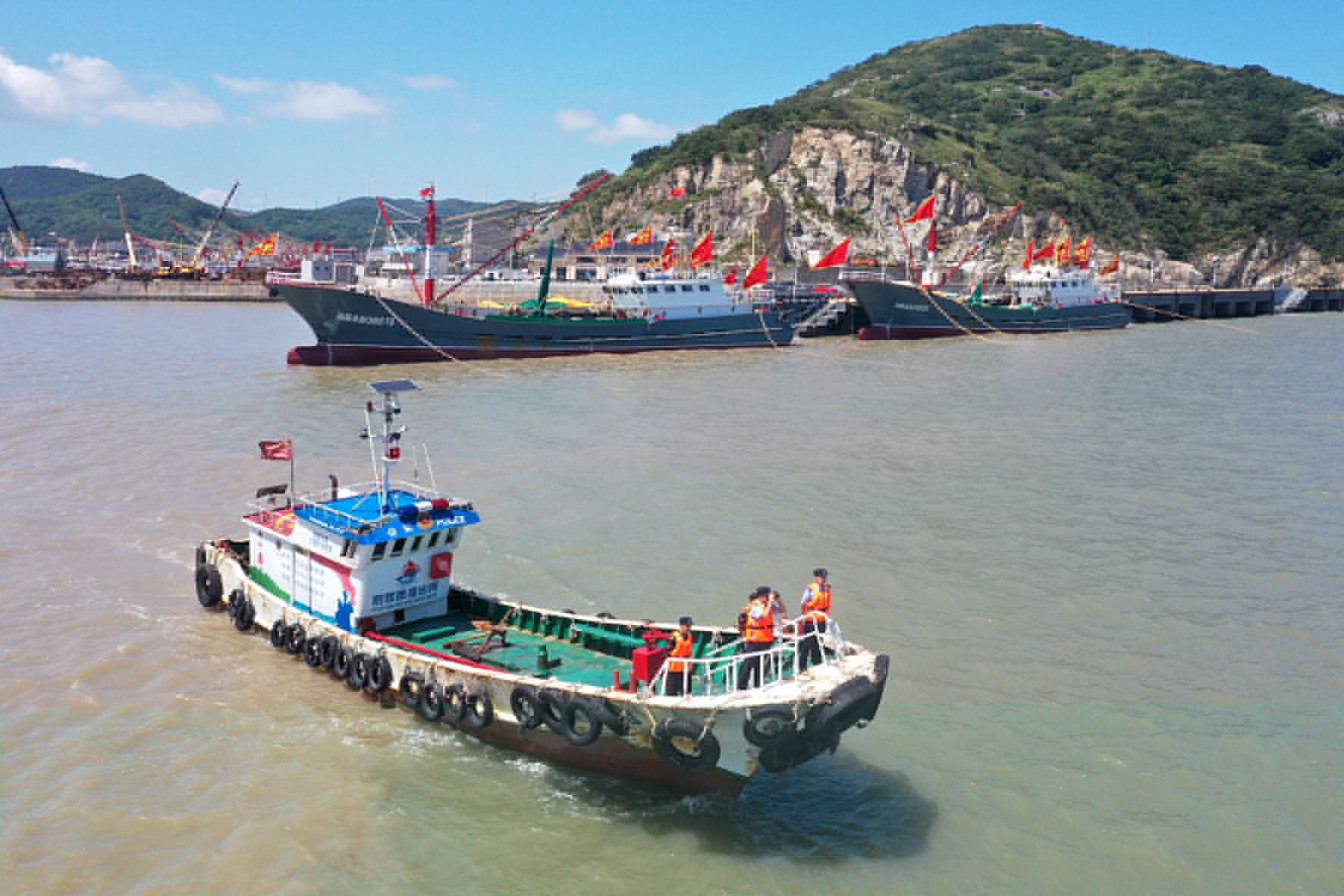 9月11日,東海即將全面開捕,浙江省舟山市岱山縣公安局羅家岙派出所民警乘坐“瀛洲紅帆船”開展海上巡查行動,加強(qiáng)漁港碼頭治安管控力度,為護(hù)航平安亞運(yùn)再加碼。