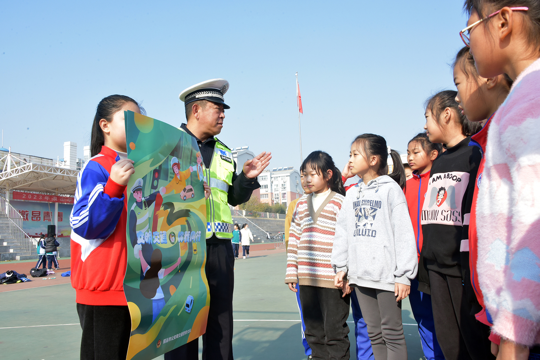 12月5日,山東省招遠(yuǎn)市公安局民警為泉山學(xué)校的同學(xué)們講解交通安全知識(shí)。