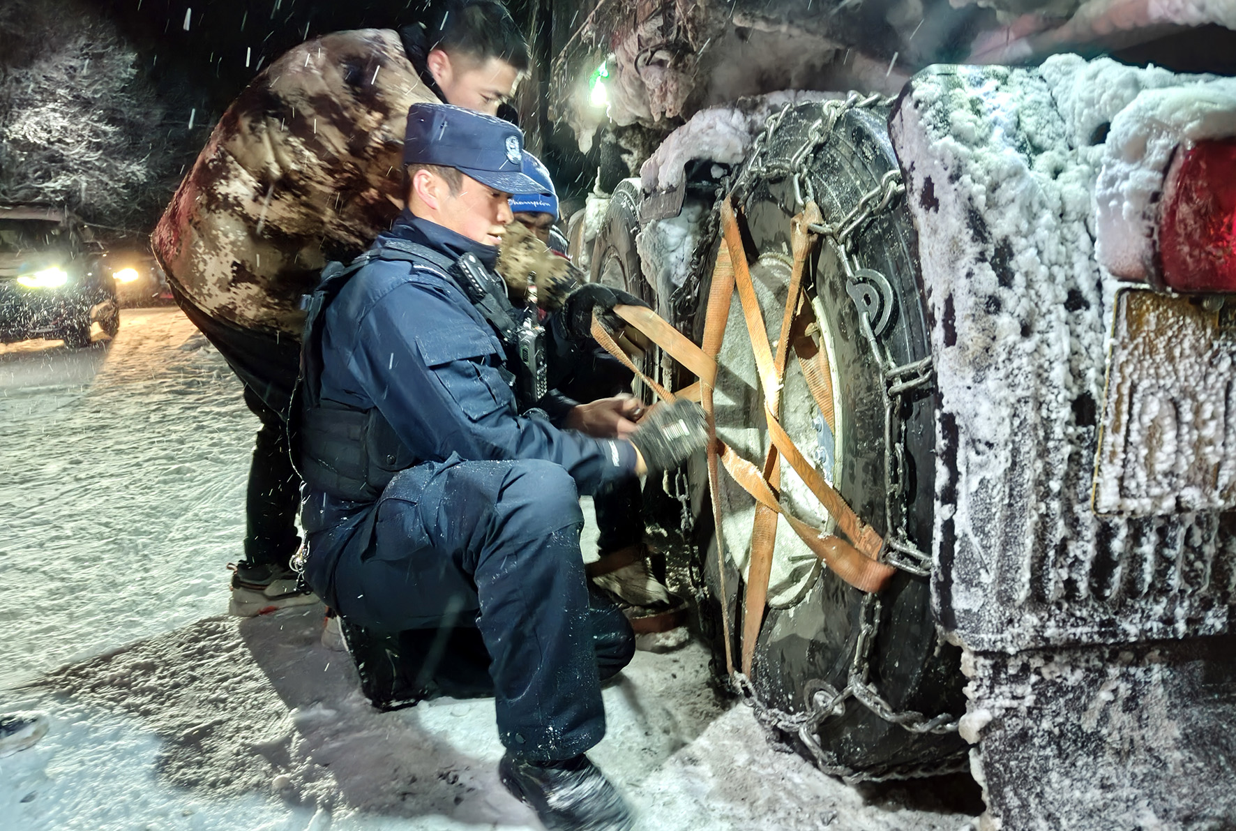 12月9日23時(shí)許,新疆出入境邊防檢查總站伊犁邊境管理支隊(duì)夏特邊境派出所接到群眾報(bào)警求助稱,因突遇暴雪,車輛被困G577國道夏特鄉(xiāng)路段。接到求助后,民警經(jīng)過2個(gè)多小時(shí)的連續(xù)奮戰(zhàn),成功幫助車輛脫困。