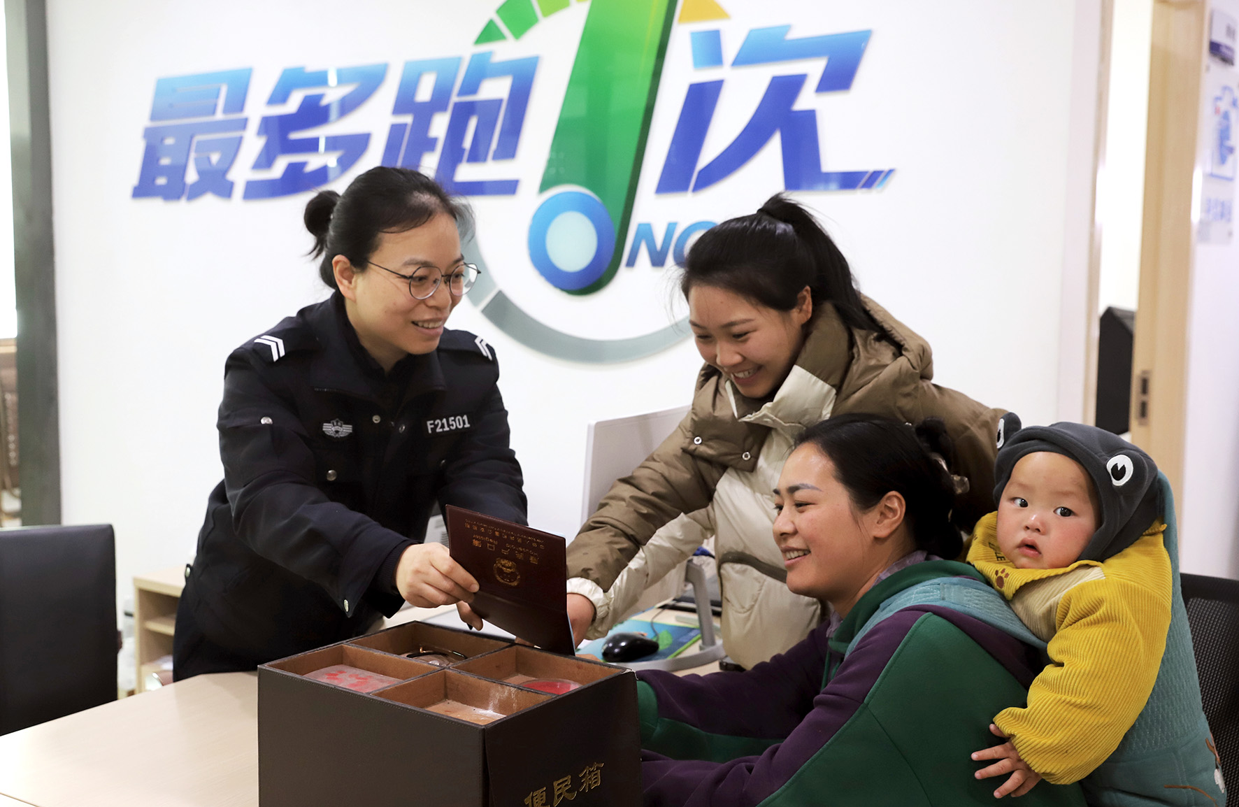 1月2日,新年第一個工作日。在浙江省臺州市路橋區(qū)橫街鎮(zhèn)為民服務中心公安窗口,警務人員熱情服務群眾。