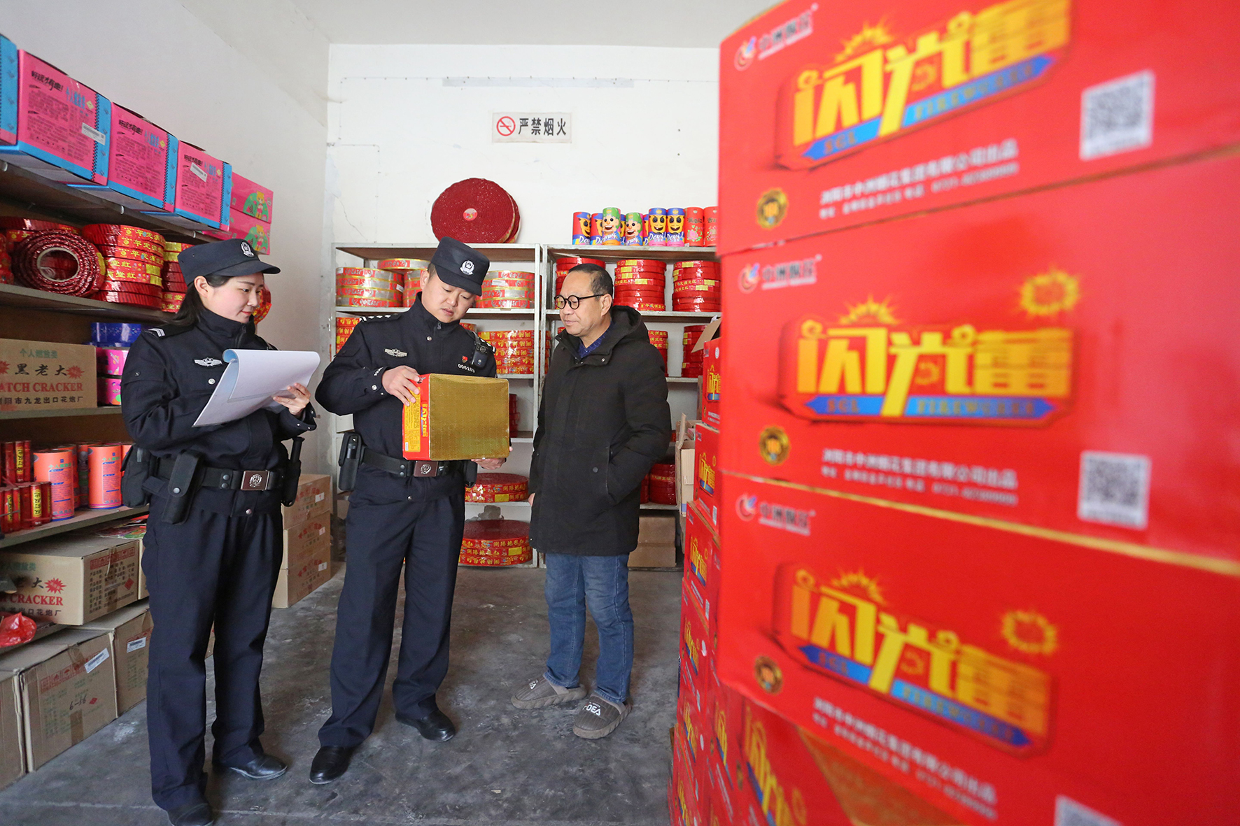 1月7日,陜西省渭南市合陽(yáng)縣公安局新池派出所民警對(duì)煙花爆竹銷售點(diǎn)進(jìn)行全面檢查。