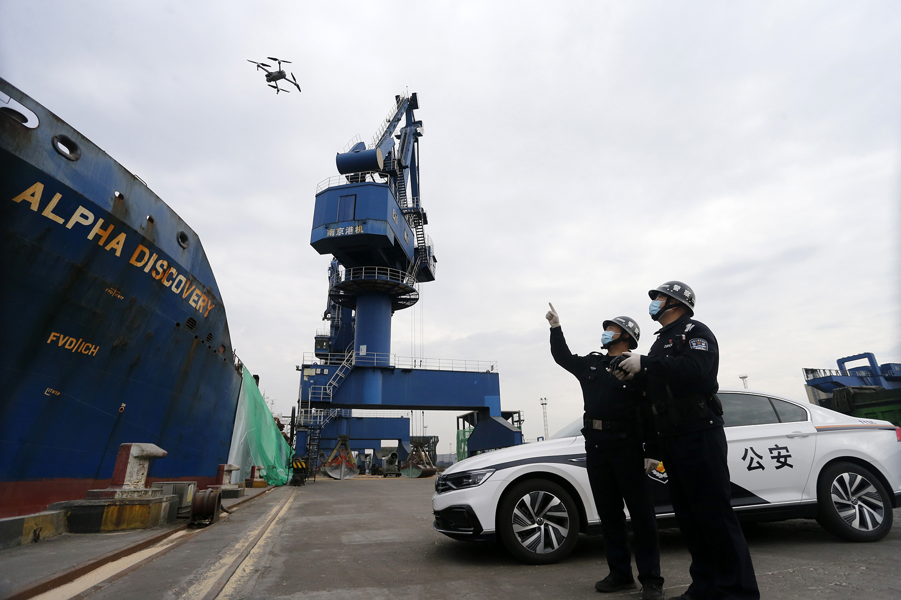 1月16日,南京港出入境邊防檢查站民警在利比里亞籍“阿爾法發(fā)現(xiàn)”號貨輪旁巡查。該船長229米,吃水11.6米,刷新了南京港開埠以來進(jìn)港船舶最大吃水紀(jì)錄。為保障該輪高效便捷通關(guān),南京港出入境邊防檢查站提前掌握船舶信息,動(dòng)態(tài)調(diào)整執(zhí)勤警力,采取提前預(yù)檢、網(wǎng)上報(bào)檢等舉措,確保貨輪到港即可作業(yè)。