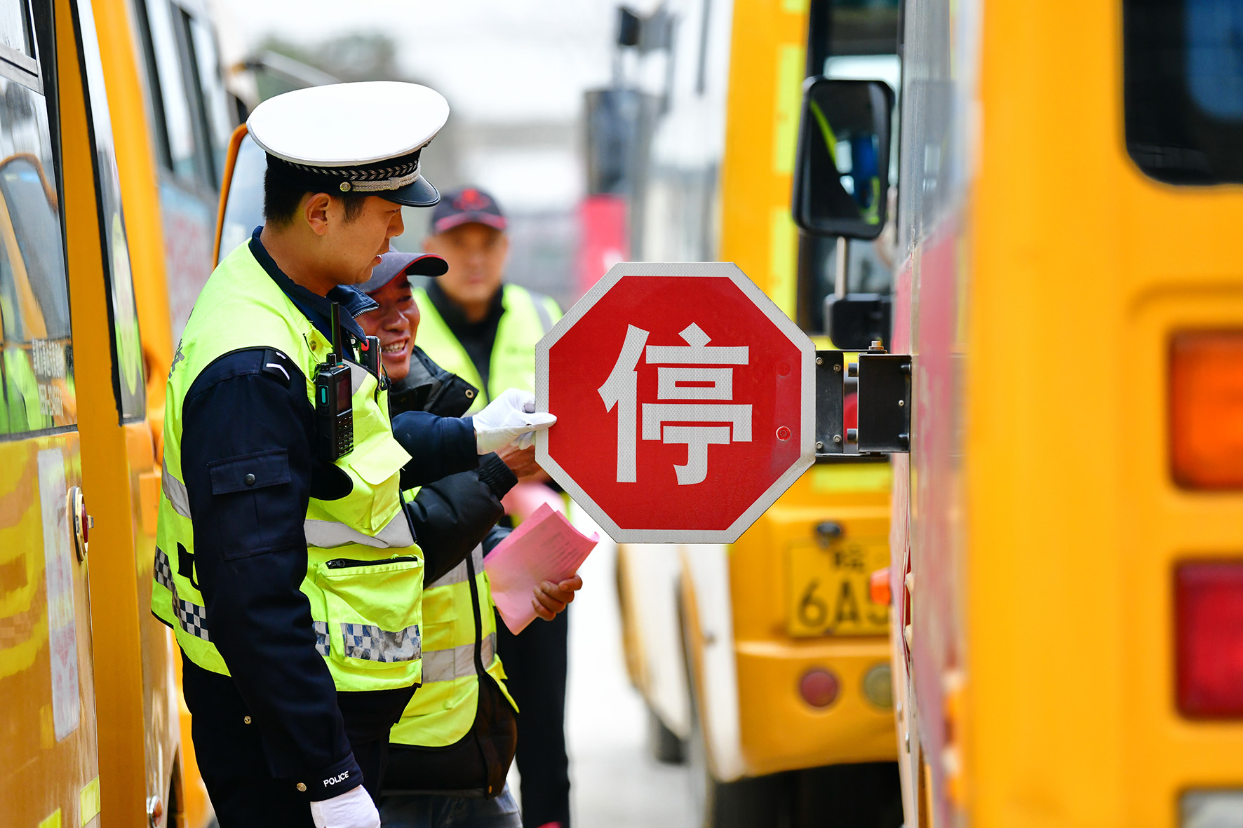 2月19日,安徽省阜南縣公安局交管大隊民警在檢查校車安全設(shè)施。開學臨近,阜南縣公安局交管大隊組織民警對全縣各中小學校校車進行全面檢查,保障學生乘車安全。