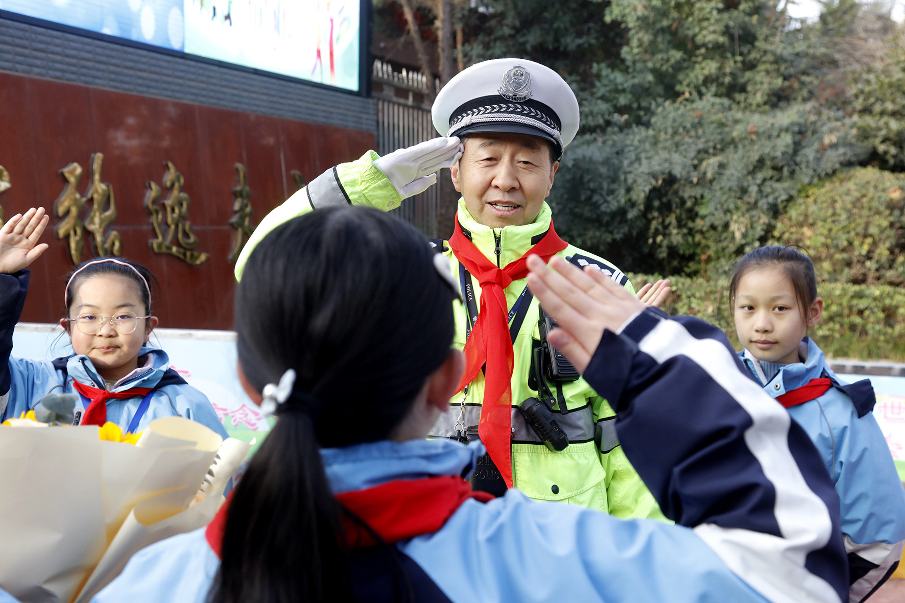 3月6日,是陜西省渭南市公安局交警支隊(duì)臨渭大隊(duì)60歲老民警李太平退休前的最后一班護(hù)學(xué)崗。從警23年的他曾經(jīng)是一名軍人,轉(zhuǎn)業(yè)到臨渭交警大隊(duì)后,從事交通管理工作最多的就是與學(xué)校的孩子們打交道,每周他都會(huì)走上課堂給孩子們宣傳交通安全知識(shí),每天早上7點(diǎn)會(huì)準(zhǔn)時(shí)站到學(xué)校門前,護(hù)送學(xué)生安全上學(xué)。