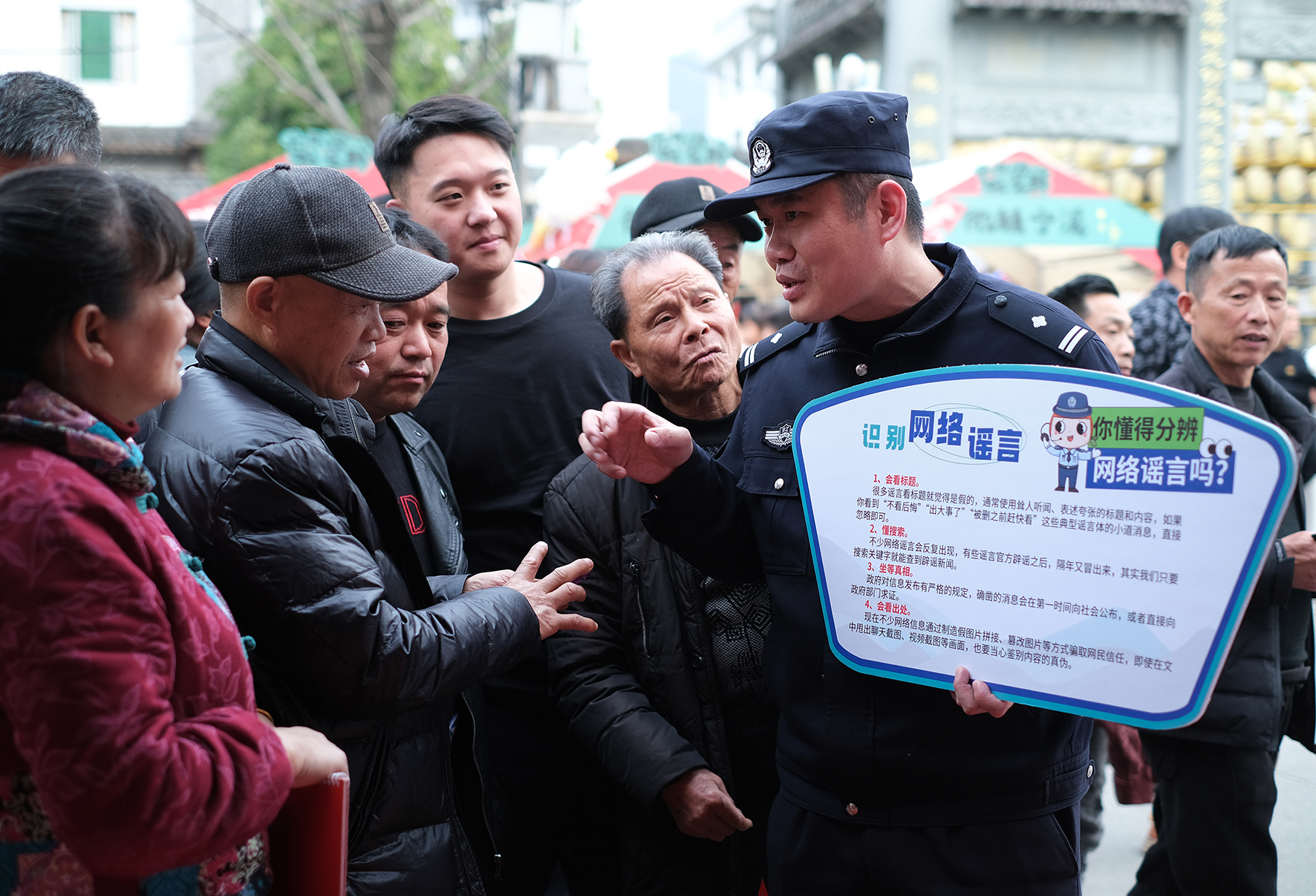 為進一步提升廣大群眾識謠、辨謠的能力,連日來,浙江省臺州市公安局黃巖分局民警依托各鄉(xiāng)鎮(zhèn)市集、花燈節(jié)等活動,開展打擊整治網絡謠言宣傳活動。