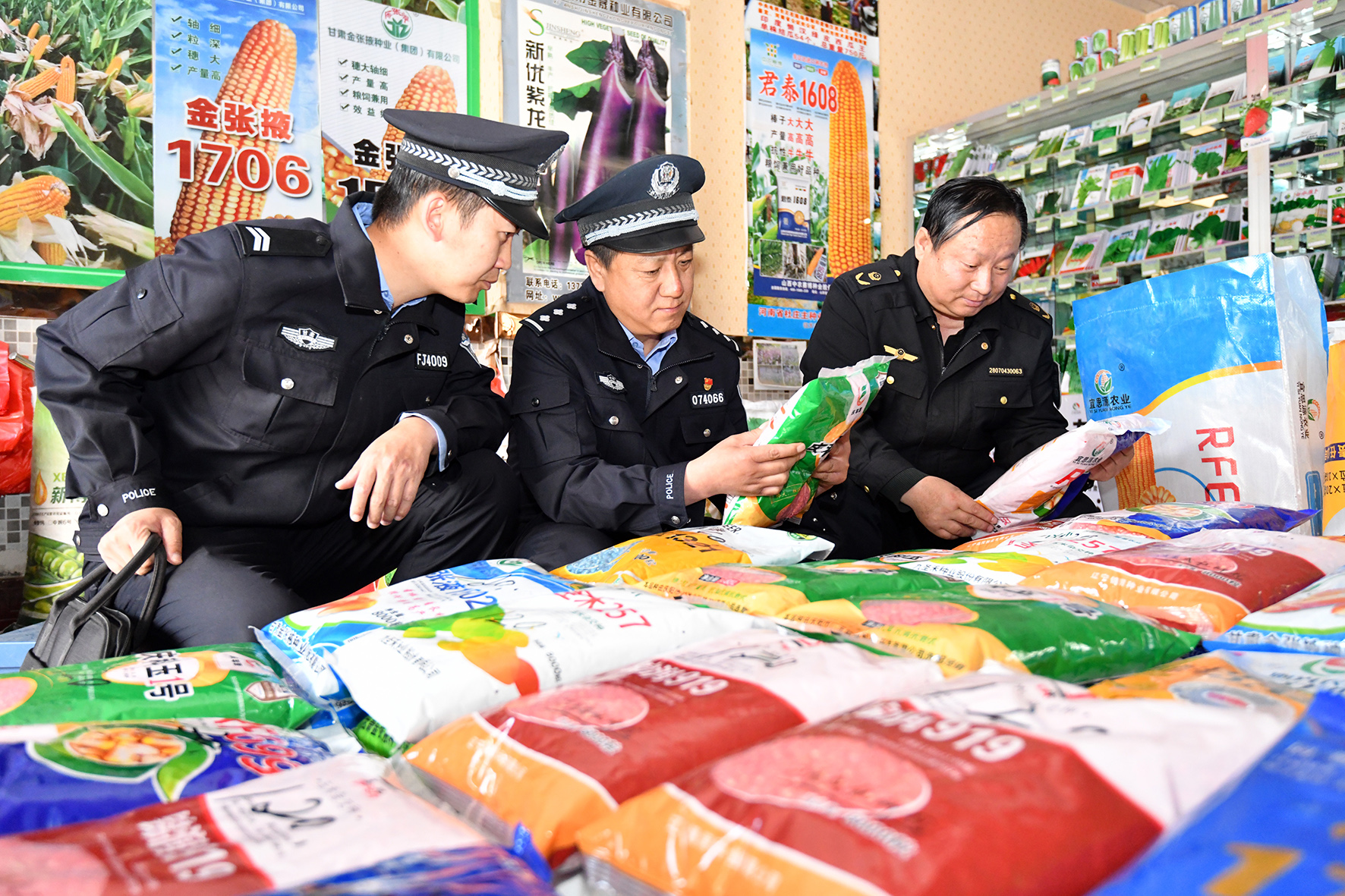 4月9日,甘肅省臨澤縣公安局城關派出所民警輔警聯(lián)合市場監(jiān)督管理局工作人員來到轄區(qū)農資銷售點,對種子、化肥、農膜、農藥等農用物資進行全覆蓋檢查,切實維護農資市場秩序,全力保障春耕備耕農業(yè)生產。