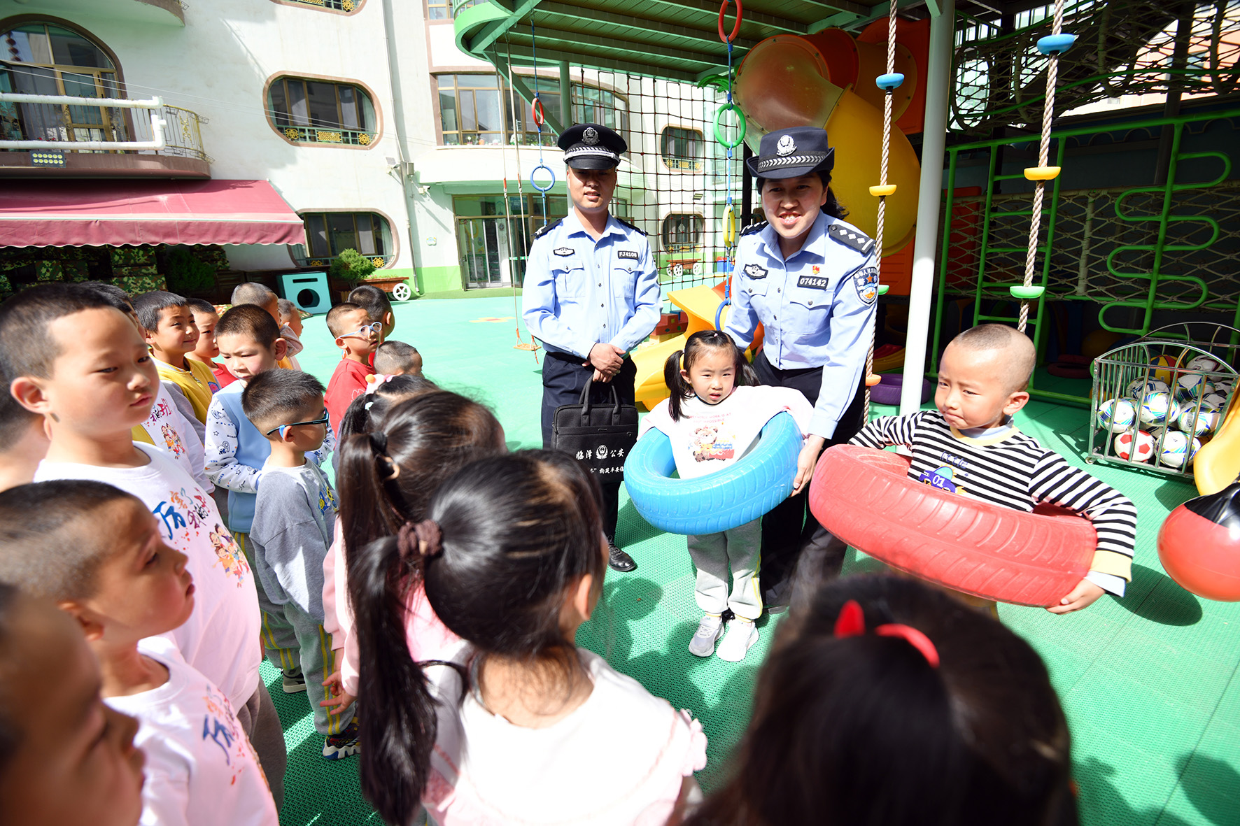 5月6日,甘肅省臨澤縣公安局城關(guān)派出所民警輔警走進轄區(qū)第一幼兒園,向幼兒們宣傳防溺水知識。