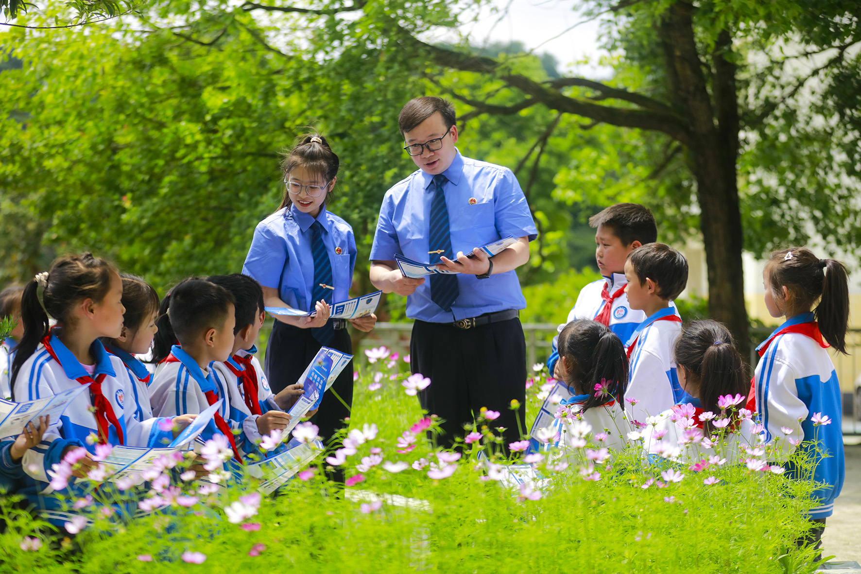 圖為5月10日,檢察干警在貴州省黔西市素樸鎮(zhèn)紅星小學(xué)給小學(xué)生普及網(wǎng)絡(luò)安全知識(shí)。