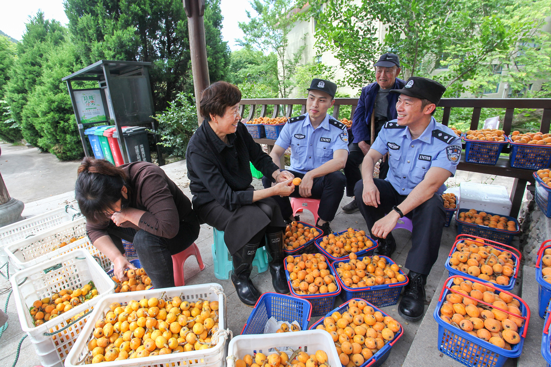 圖為5月14日,民警在嶼頭鄉(xiāng)上鳳村枇杷銷售點(diǎn)走訪。