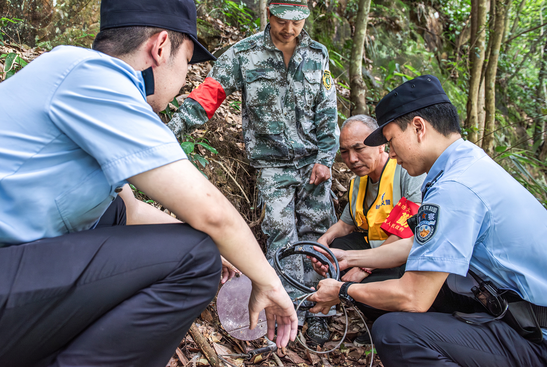 圖為5月22日,民警在巡查中發(fā)現非法安裝的捕獵夾,進行拆除收繳。
