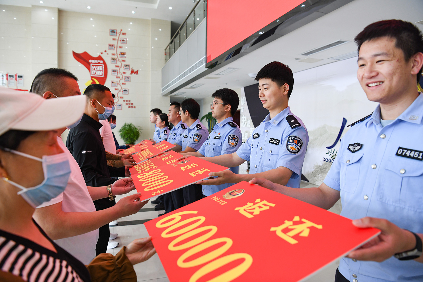 6月6日,安徽省馬鞍山市含山縣公安局刑偵大隊(duì)舉行被盜被騙財(cái)物返還儀式,將追回的135余萬(wàn)涉案錢(qián)款返還給群眾。