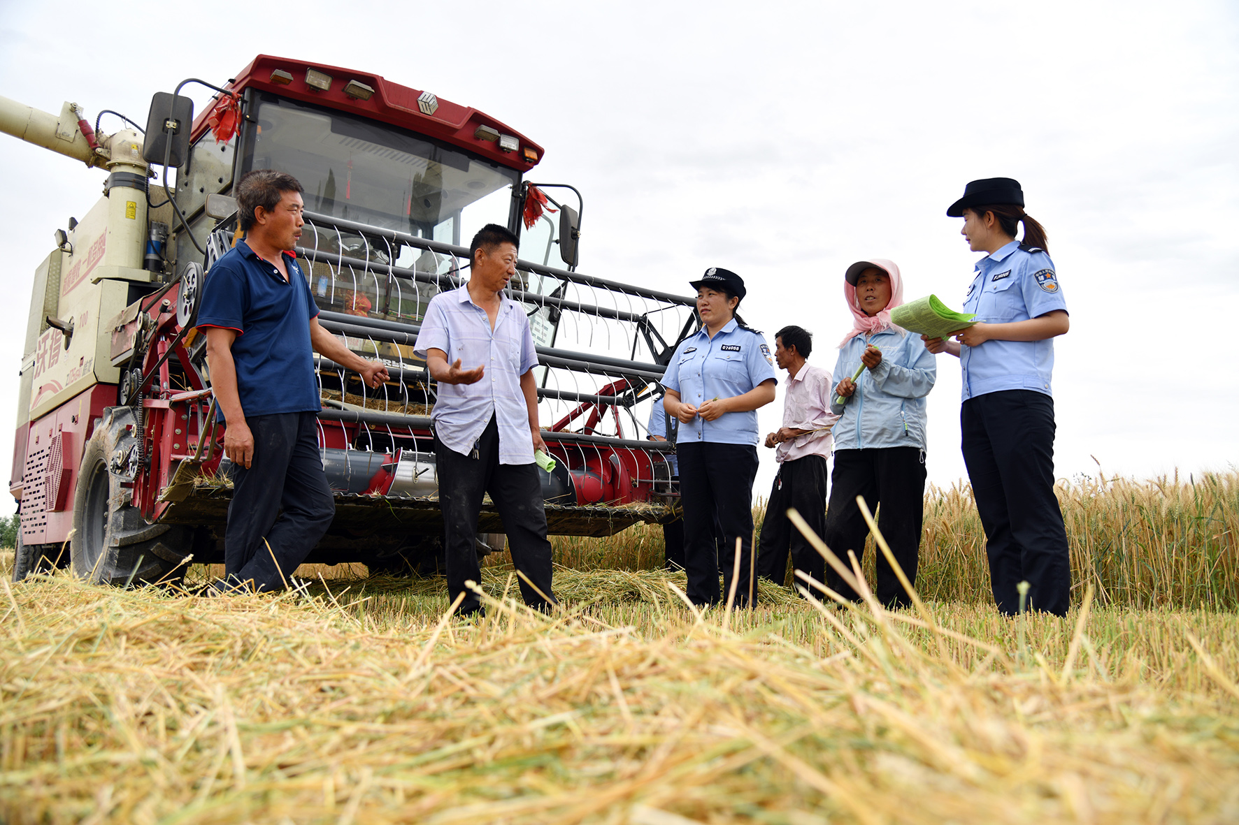 7月12日,甘肅省臨澤縣公安局森林警察大隊(duì)民警輔警深入田間地頭走訪,了解小麥長勢及銷量情況,幫助麥?zhǔn)沾迕窠鉀Q遇到的困難與問題。