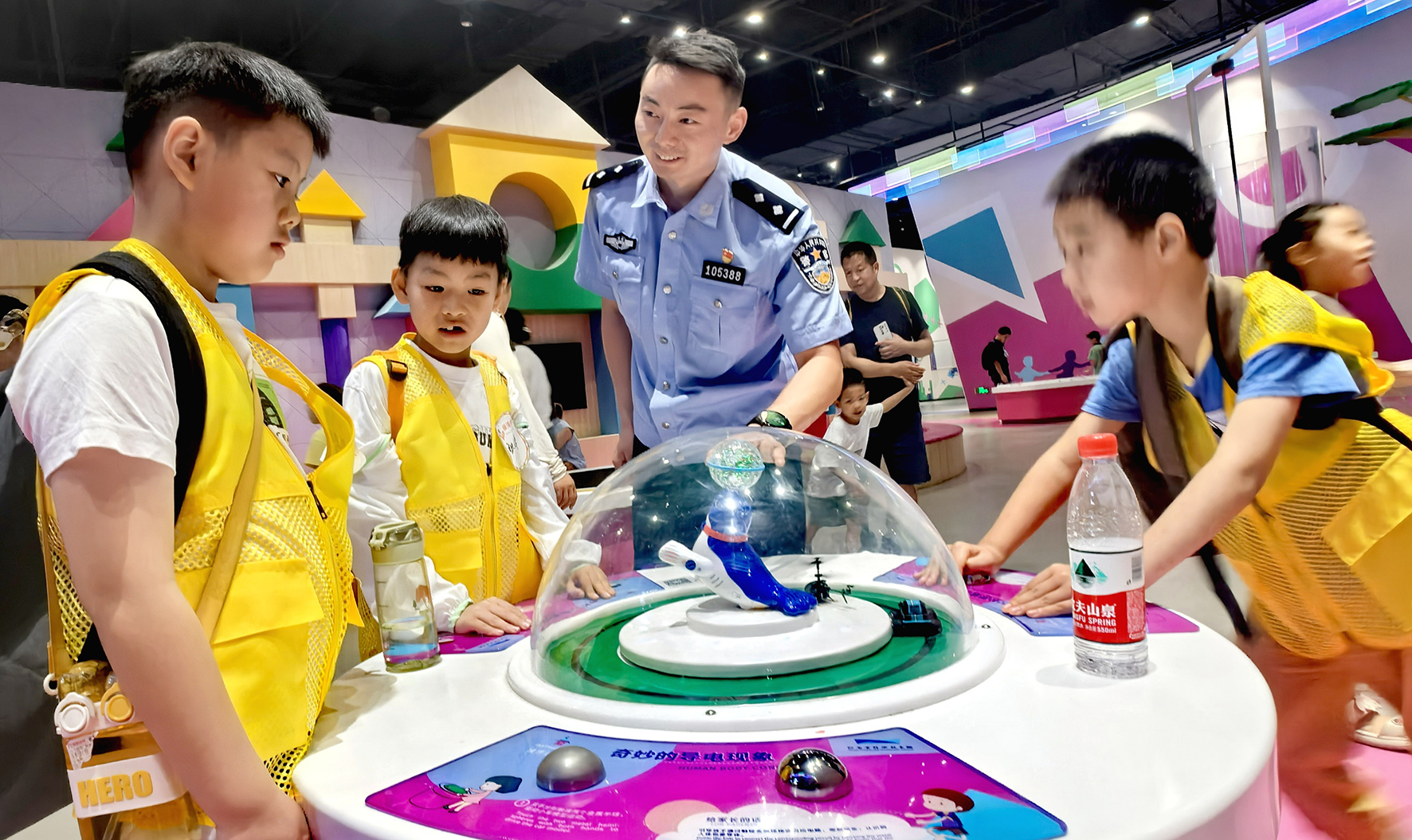 7月12日,河南省鄭州市公安局金水分局暑假警營(yíng)愛(ài)心托管班的孩子們來(lái)到河南省科技館學(xué)習(xí)體驗(yàn)新科技。