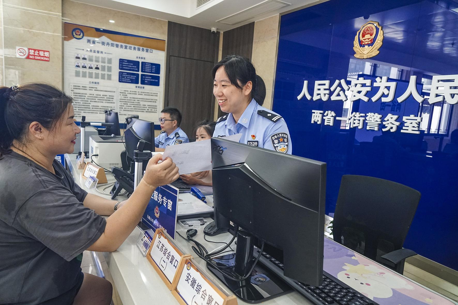 圖一:7月25日,皖蘇“兩省一街”警務(wù)室民警服務(wù)兩地群眾,真正實現(xiàn)“進一扇門,辦兩省事”。