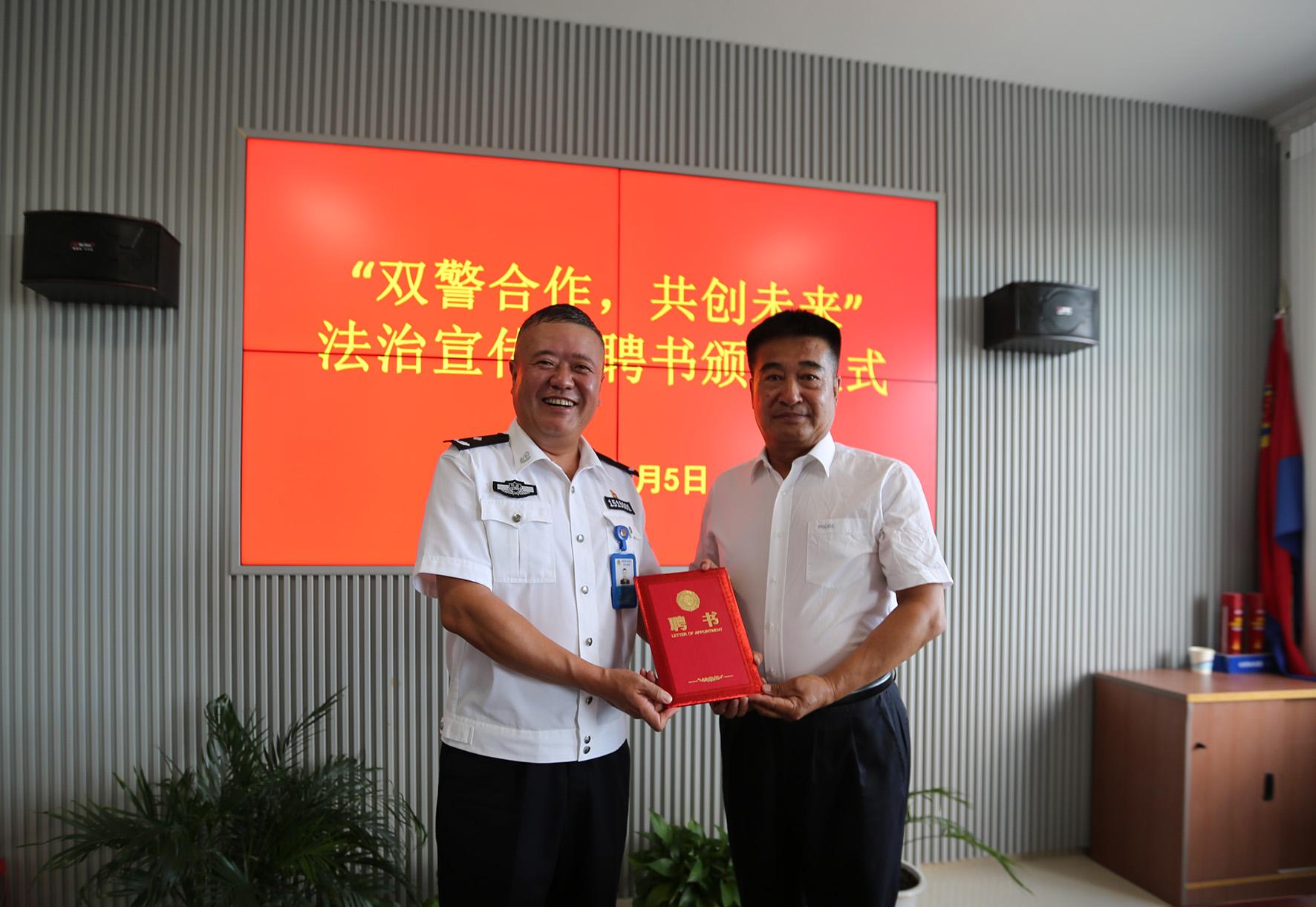 圖為監(jiān)獄負責(zé)人向法治宣傳員頒發(fā)聘書。