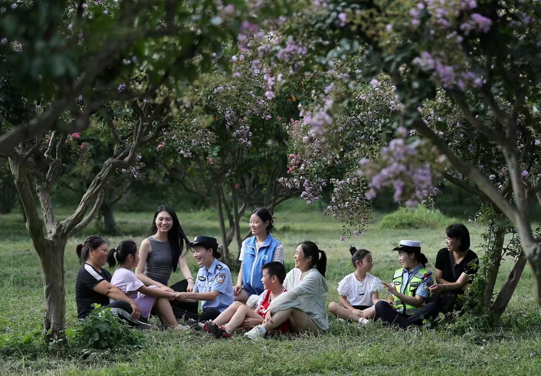 8月15日,湖北省鐘祥市公安局“巾幗護蕾”小分隊在皇莊街道皇城社區(qū)通過心理團體輔導游戲,向社區(qū)婦女和兒童普及未成年人心理健康教育知識。