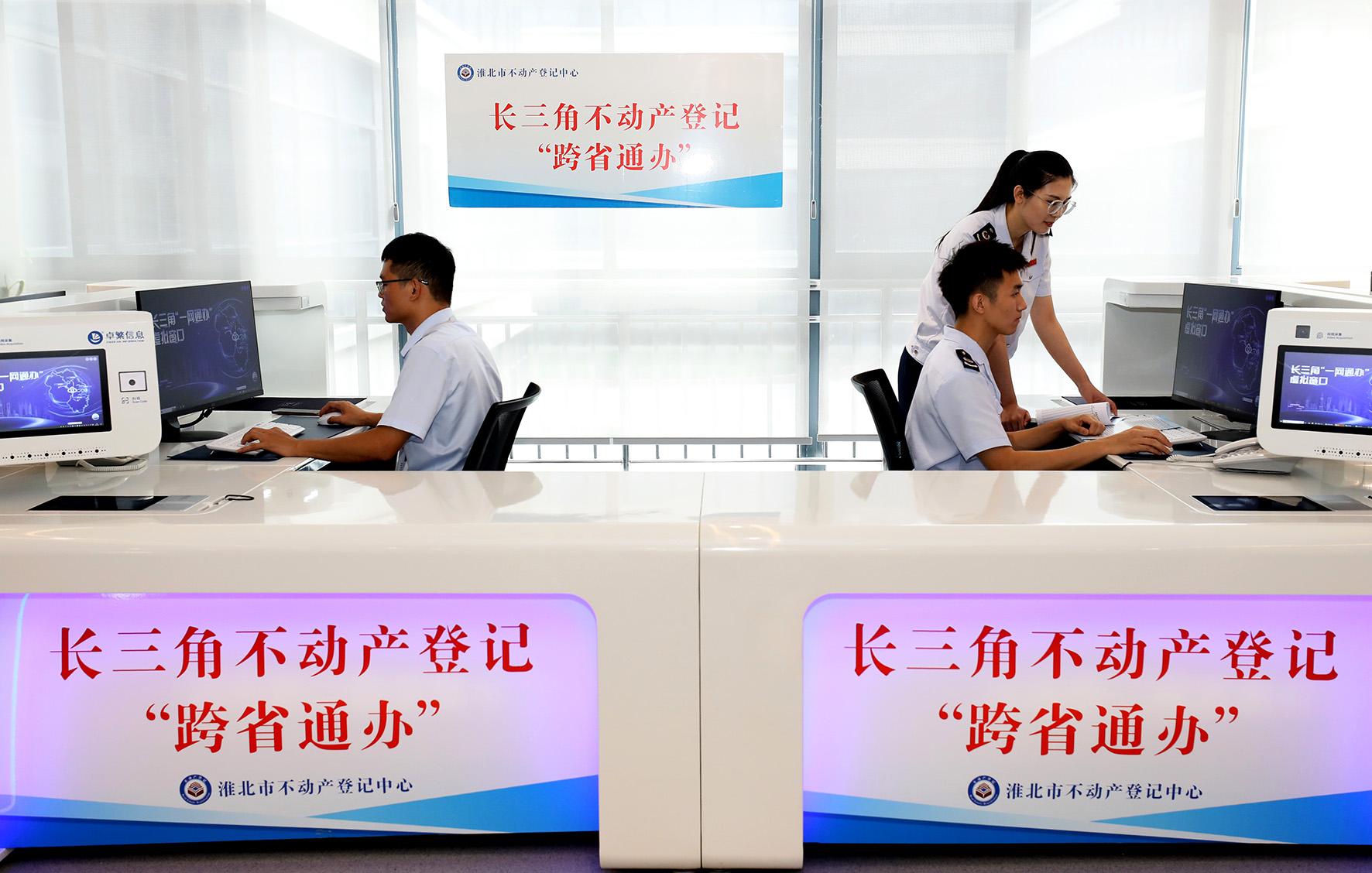 9月5日,安徽省淮北市政務(wù)服務(wù)中心稅務(wù)和不動(dòng)產(chǎn)登記部門工作人員,利用長三角一體化跨省通辦政務(wù)“虛擬窗口”,為異地群眾遠(yuǎn)程辦理不動(dòng)產(chǎn)登記業(yè)務(wù)。