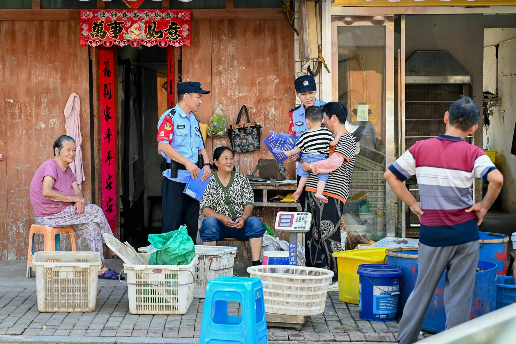 9月4日,安徽省和縣公安局民警在西埠街道向居民宣講最新網(wǎng)絡(luò)詐騙手段,提醒居民接到陌生電話提高警惕,不相信、不轉(zhuǎn)賬,嚴(yán)防上當(dāng)受騙。