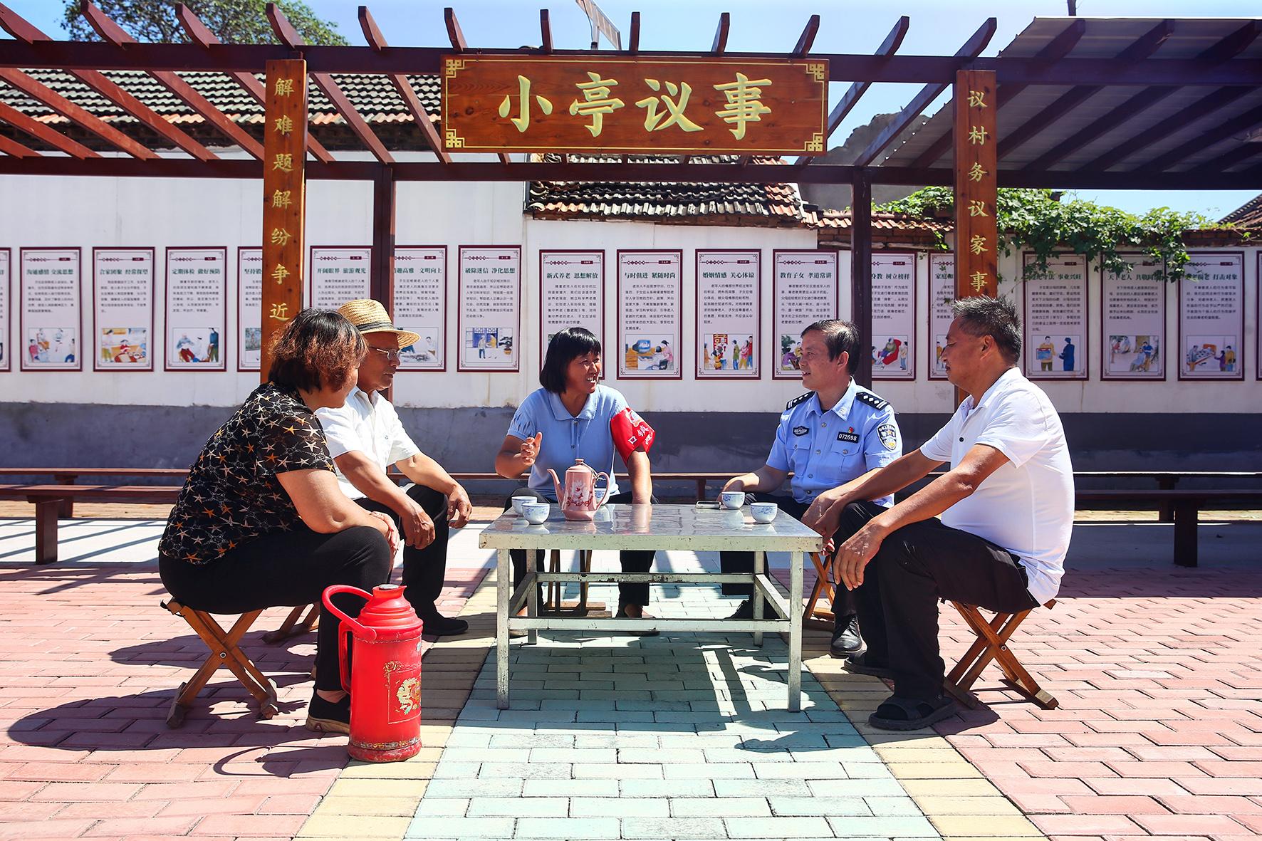 9月6日,山東省濟(jì)南市萊蕪區(qū)口鎮(zhèn)街道陶北村,“口鎮(zhèn)大媽”調(diào)解團(tuán)成員在社區(qū)民警的配合下成功調(diào)解一起村民之間糾紛。