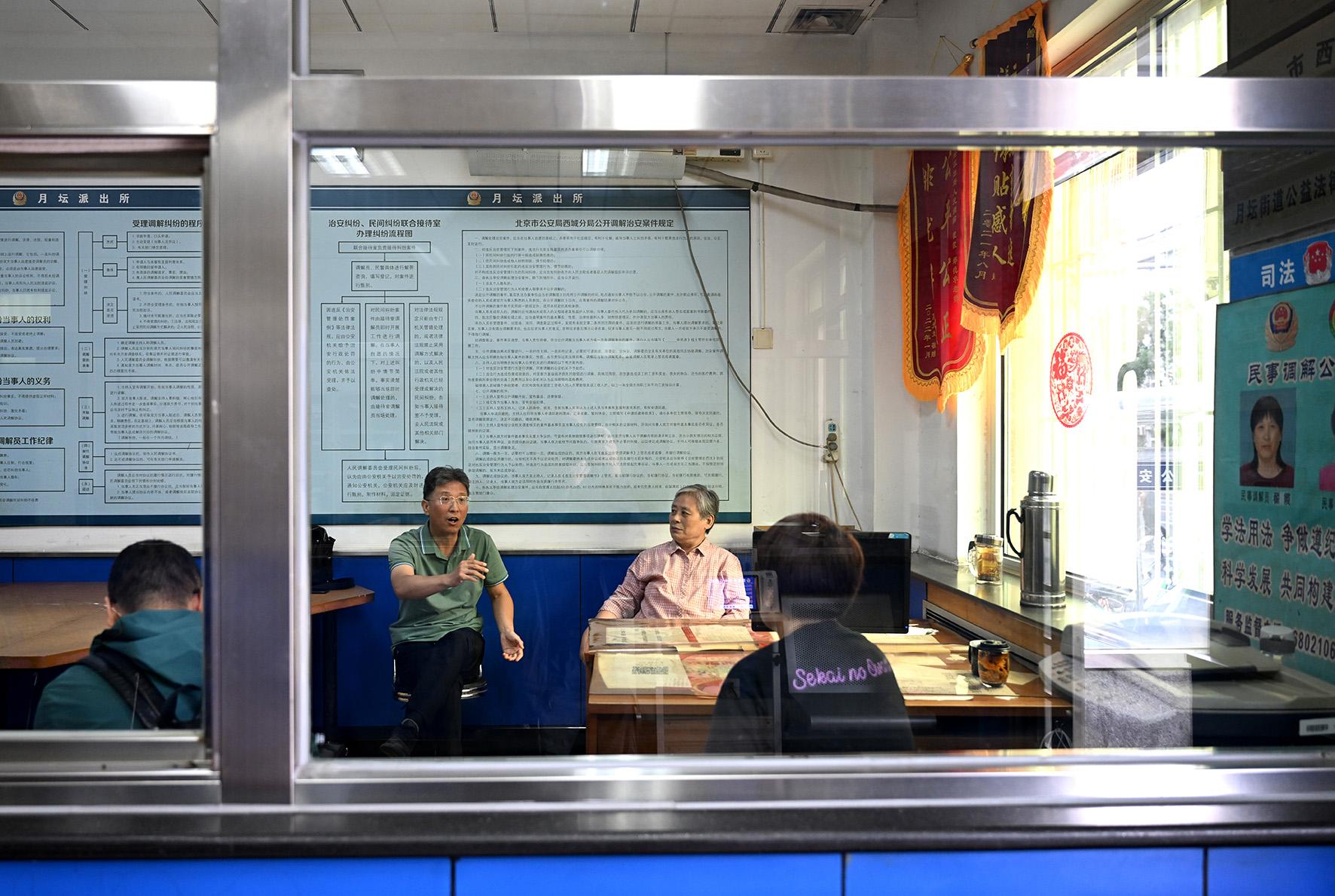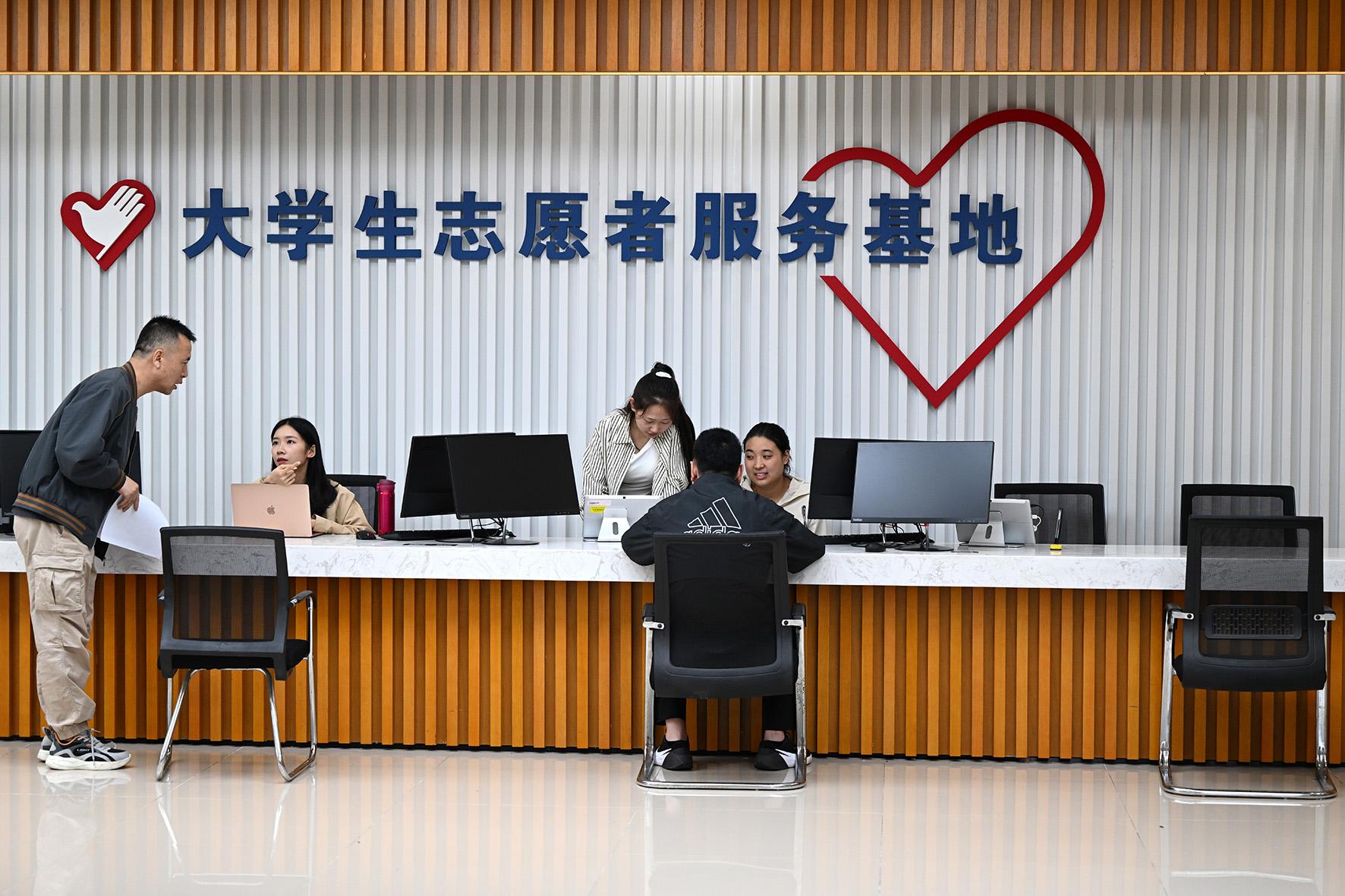 大學生志愿者正在為群眾解答相關(guān)法律問題。2008年,西城區(qū)人民法院與中國政法大學合作,設立全國首家志愿者服務基地。