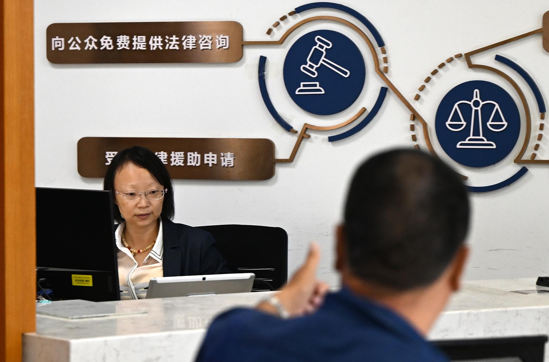 一名群眾的咨詢得到滿意解答后,高興地向法援律師豎起大拇指表示感謝。2015年起,西城區(qū)司法局法援中心律師每周定時來法院提供訴訟咨詢、代寫文書及法律援助服務。