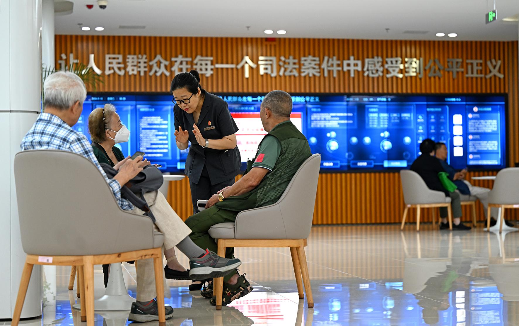 9月10日,北京市西城區(qū)人民法院訴訟服務中心大廳,立案庭訴服團隊導訴組組長杜春主動上前詢問幾位老人的情況,并協(xié)調(diào)解決了他們遇到的立案問題。