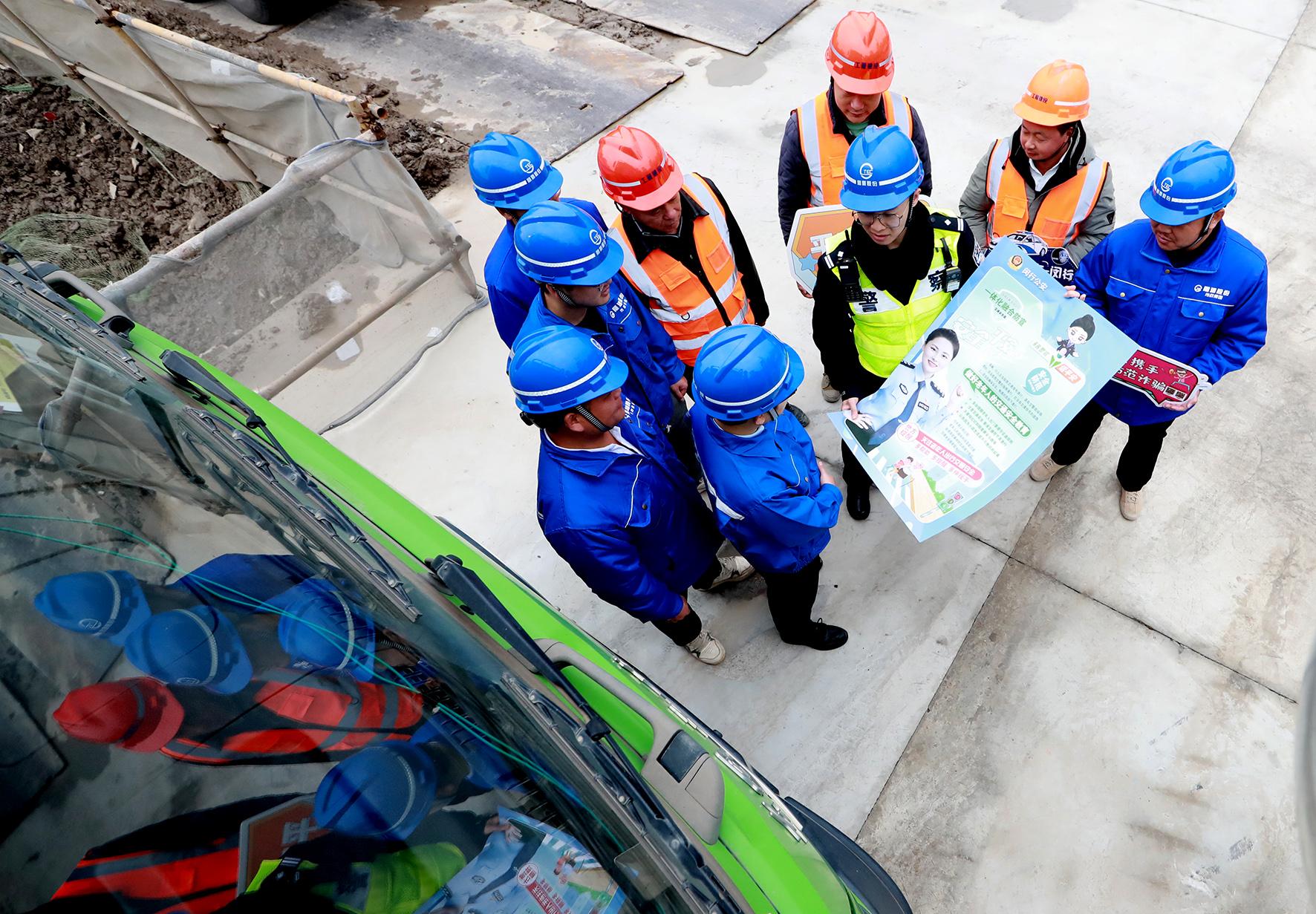 12月13日,上海市公安局閔行分局交警支隊(duì)民警在浦江鎮(zhèn)浦江基地1號(hào)地塊在建工地開展現(xiàn)場(chǎng)督導(dǎo)檢查,并對(duì)現(xiàn)場(chǎng)施工作業(yè)人員開展交通安全融合宣傳。