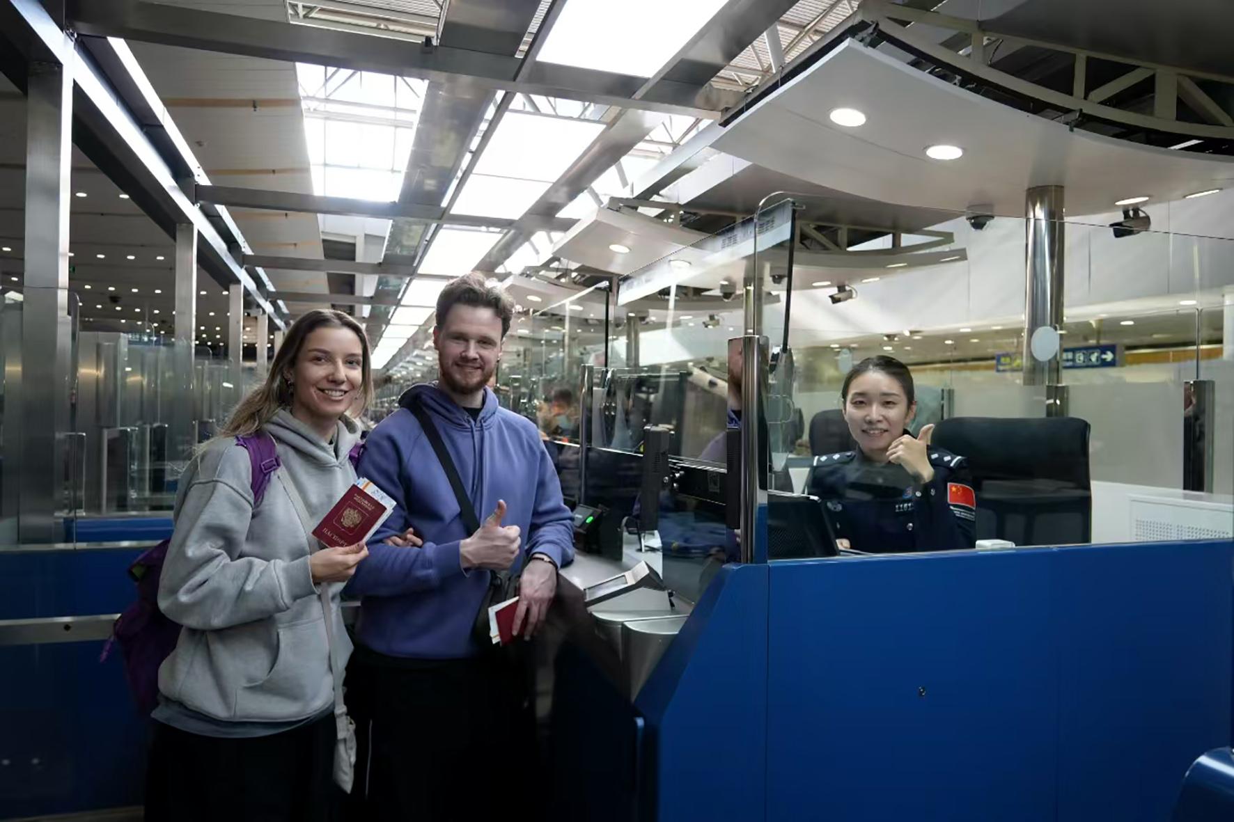 12月17日10時(shí)許,一對(duì)俄羅斯情侶成功申請(qǐng)240小時(shí)臨時(shí)入境許可,成為北京首都國(guó)際機(jī)場(chǎng)T2航站樓首批享受過(guò)境免簽新政策的外國(guó)籍旅客。國(guó)家移民管理局12月17日發(fā)布公告,將過(guò)境免簽外國(guó)人在境內(nèi)停留時(shí)間由原72小時(shí)和144小時(shí)均延長(zhǎng)為240小時(shí)。為確保政策措施精準(zhǔn)高效實(shí)施,北京邊檢總站加強(qiáng)勤務(wù)組織調(diào)度和旅客流量監(jiān)測(cè),精準(zhǔn)布設(shè)引導(dǎo)標(biāo)志,積極組建多語(yǔ)種服務(wù)小組,選派精通外語(yǔ)的民警做好政策解讀,確保申請(qǐng)240小時(shí)臨時(shí)入境許可的外籍旅客準(zhǔn)確獲取信息、有序排隊(duì)申請(qǐng),提高臨時(shí)入境許可簽發(fā)效率。