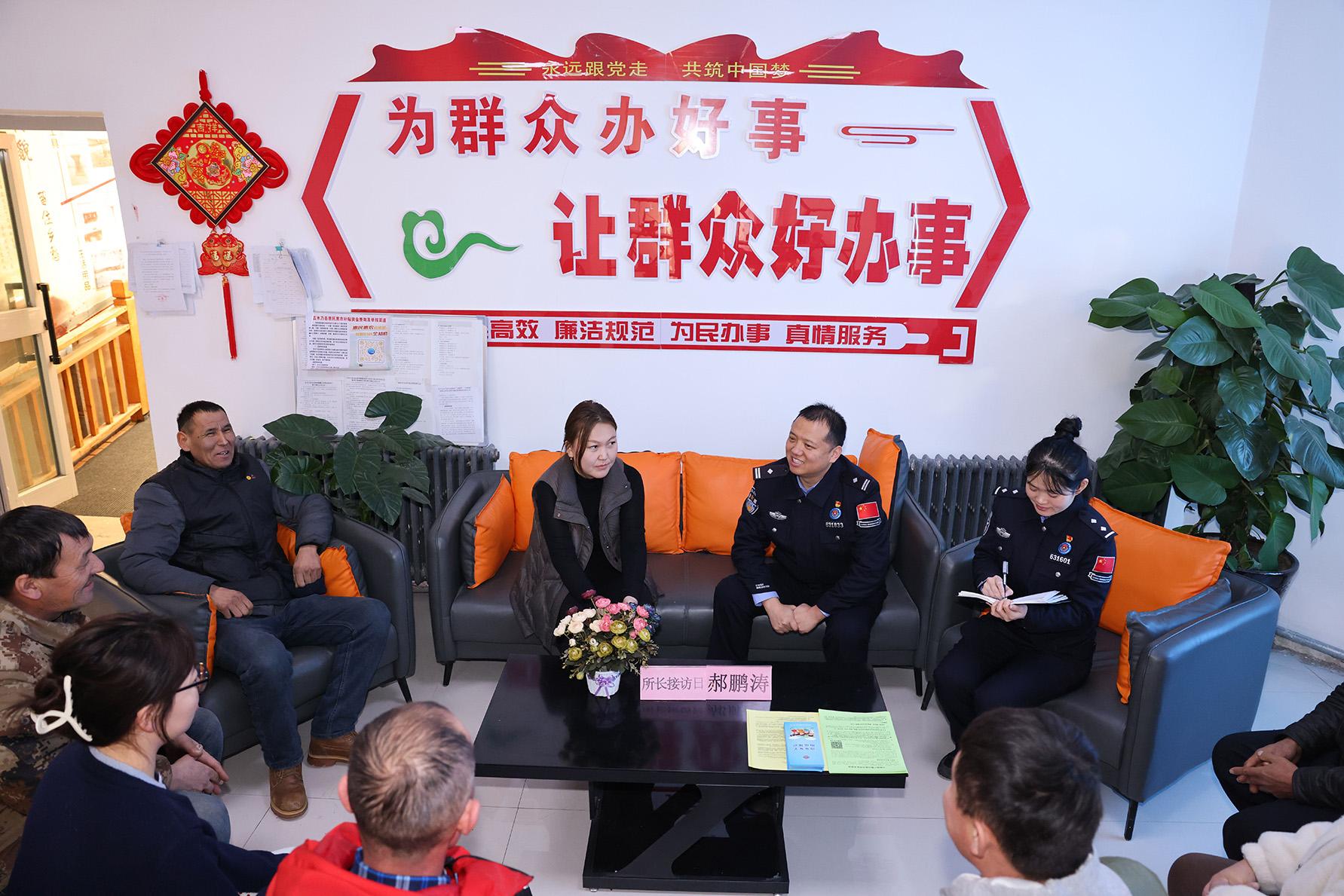 12月25日,新疆阿勒泰邊境管理支隊托普鐵熱克邊境派出所所長與轄區(qū)群眾面對面交流,解答群眾咨詢,聽取群眾意見建議。