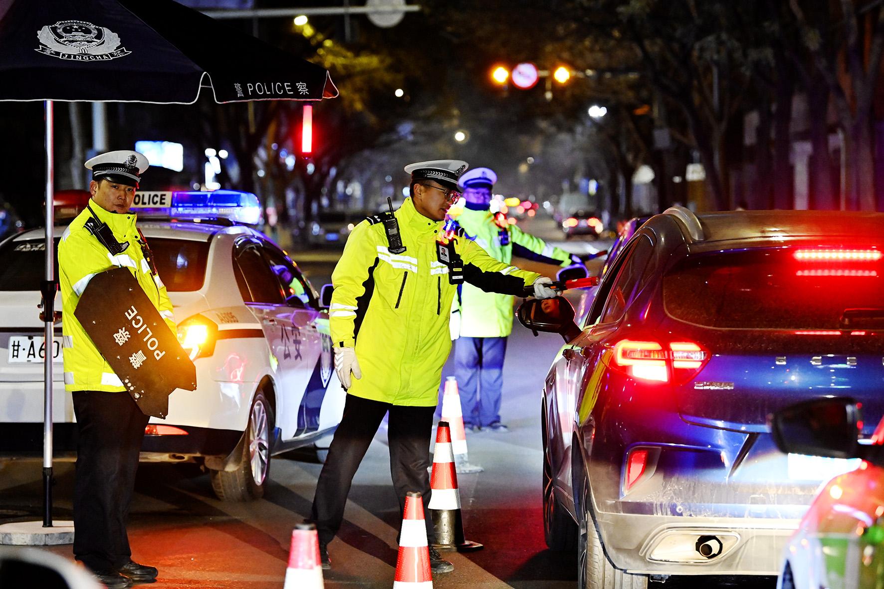 1月8日晚,甘肅省蘭州市公安局交警支隊東崗大隊五中隊在轄區(qū)開展夜查行動。