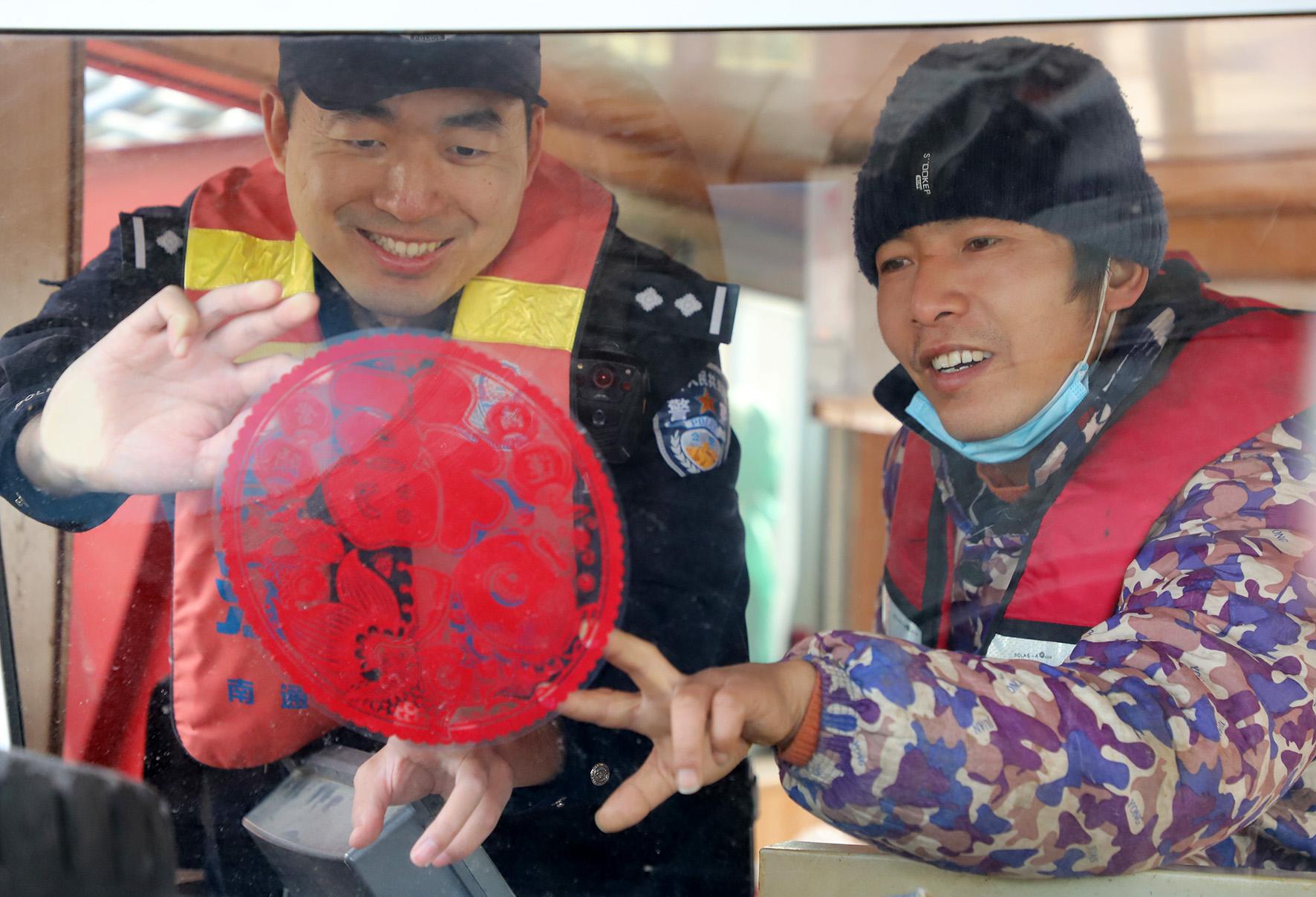 1月16日,長江航運(yùn)公安局南通分局通州派出所組織警力對靠泊作業(yè)船舶進(jìn)行安全巡查,并送上新春祝福。