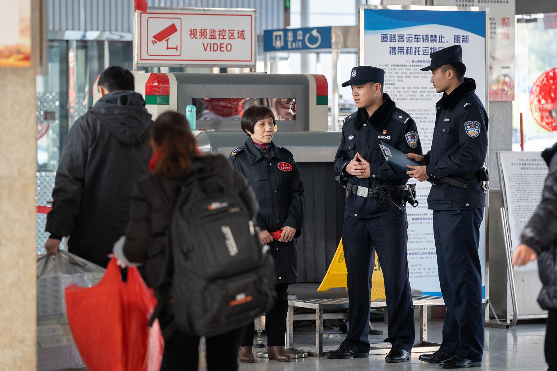 1月16日,四川省綿陽市公安局涪城區(qū)分局花園派出所民警向車站工作人員了解春運期間車站安全相關(guān)事宜。
