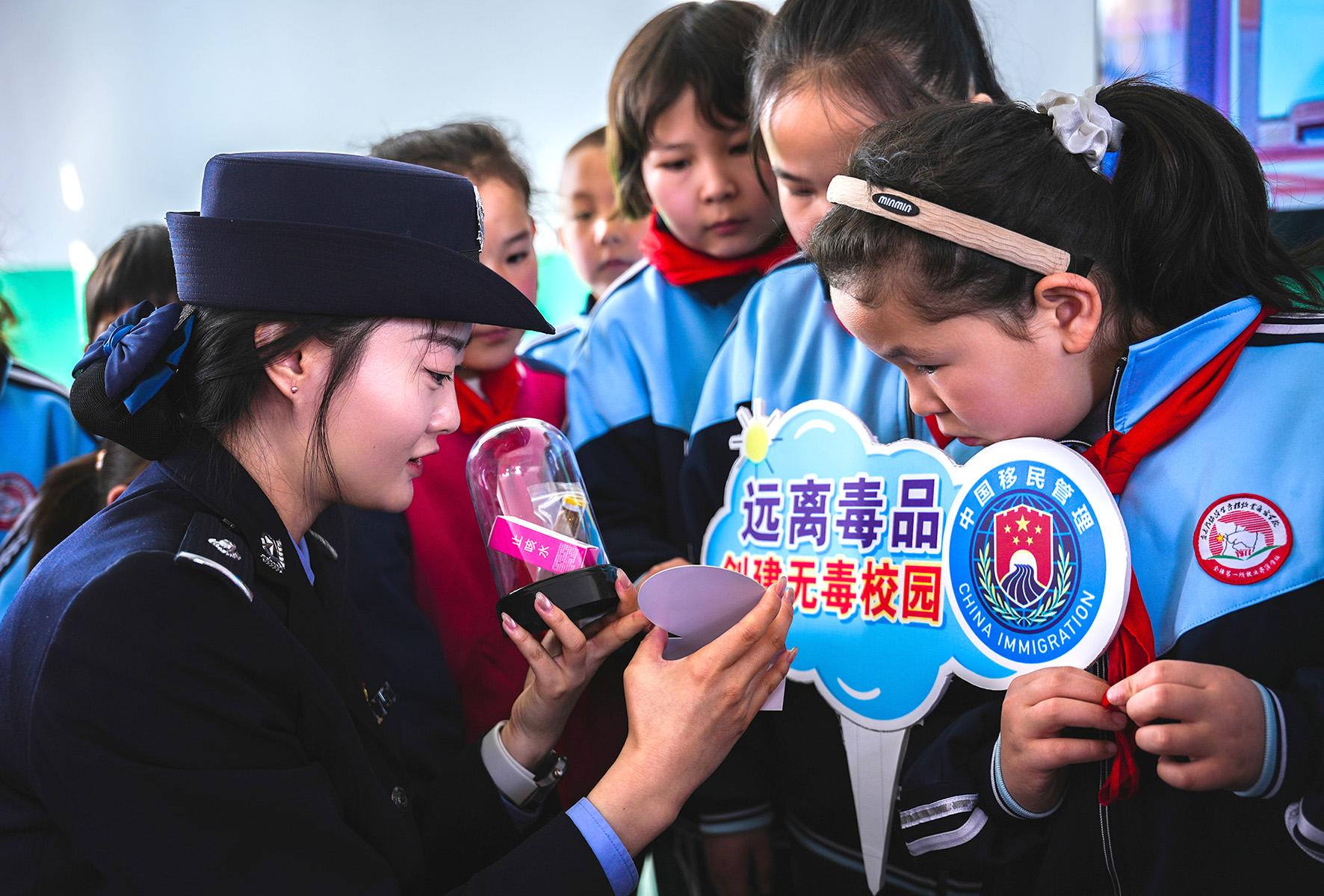 2月17日,新疆阿勒泰邊境管理支隊恰勒什海邊境派出所走進(jìn)薩爾吾楞牧業(yè)寄宿學(xué)校開展“開學(xué)禁毒第一課”活動。