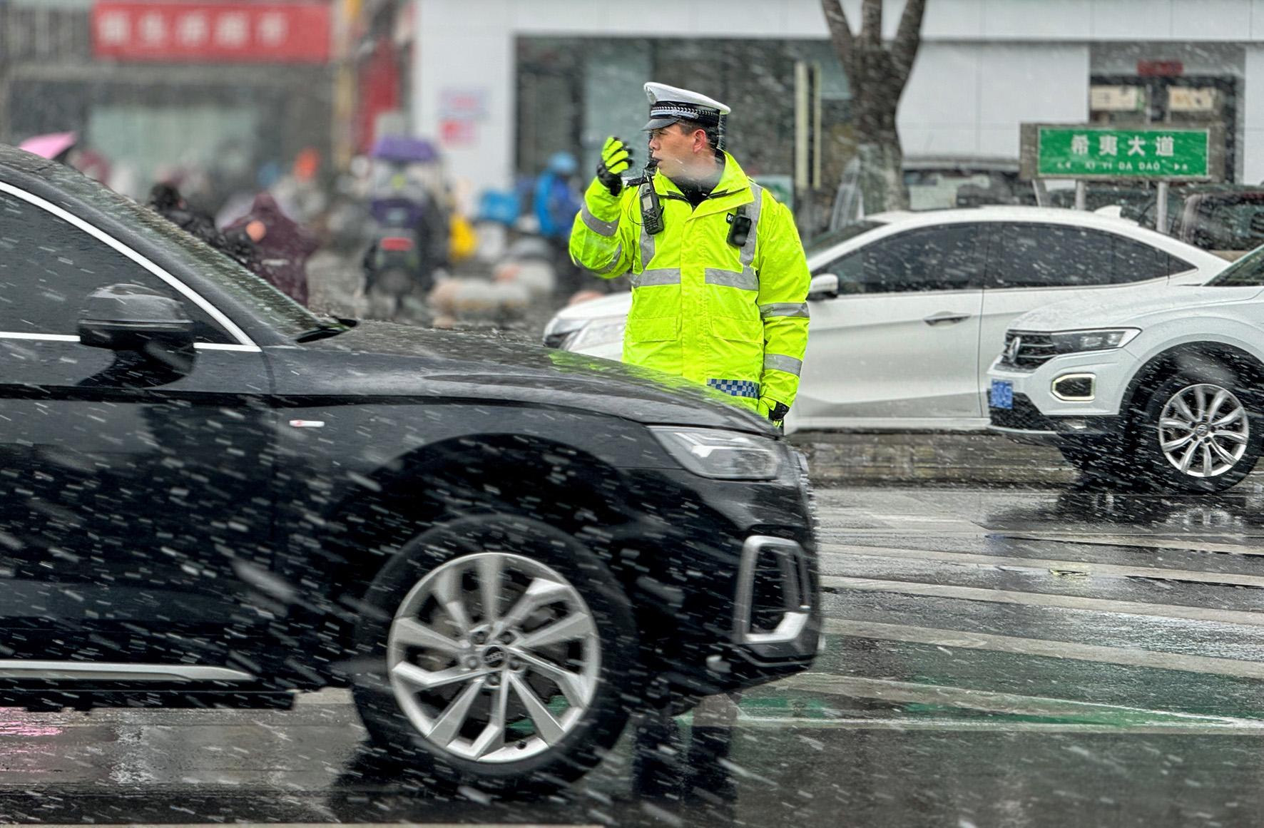 3月2日,山東省濟(jì)南市出現(xiàn)大風(fēng)降溫雨雪天氣。濟(jì)南市公安局市中區(qū)分局立即啟動(dòng)惡劣天氣應(yīng)急預(yù)案,組織警力在重點(diǎn)路段、十字路口執(zhí)勤巡邏,確保群眾出行安全。