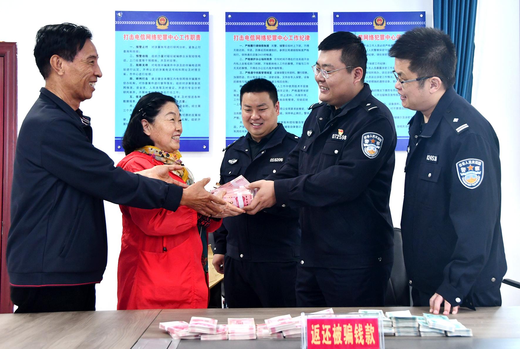 4月22日,河北省邯鄲市永年區(qū)公安局刑警大隊機動中隊舉行返贓儀式,將近日破獲的一起電信網絡詐騙案追回的30萬元涉案錢款返還給群眾。