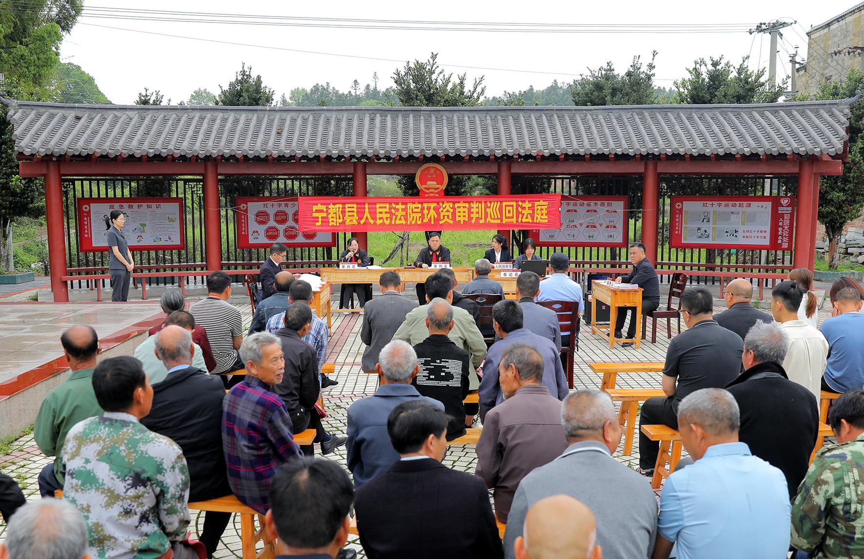 4月24日上午,江西省寧都縣人民法院將庭審“搬”進(jìn)案發(fā)地黃陂鎮(zhèn)山堂村,公開(kāi)巡回審理一起因吸煙不慎引發(fā)森林火災(zāi)的刑事案件,當(dāng)?shù)卮甯刹俊⒆o(hù)林員、村民等50余人旁聽(tīng)庭審。