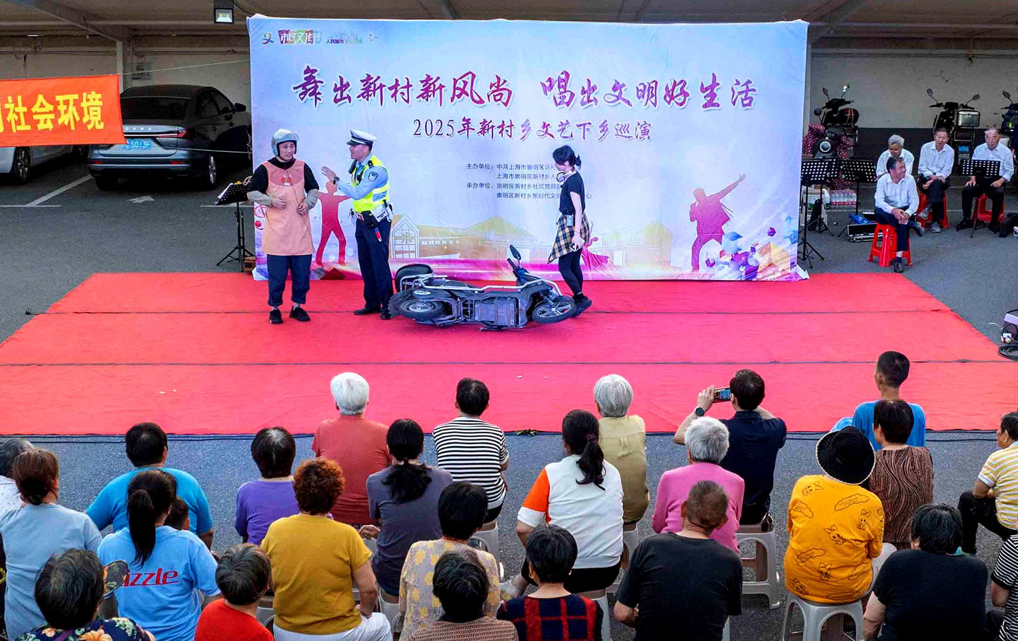 5月20日傍晚,上海市公安局崇明分局交管支隊(duì)民警輔警來到轄區(qū)新村鄉(xiāng)開展“美麗鄉(xiāng)村行”文藝下鄉(xiāng)巡演活動(dòng)。