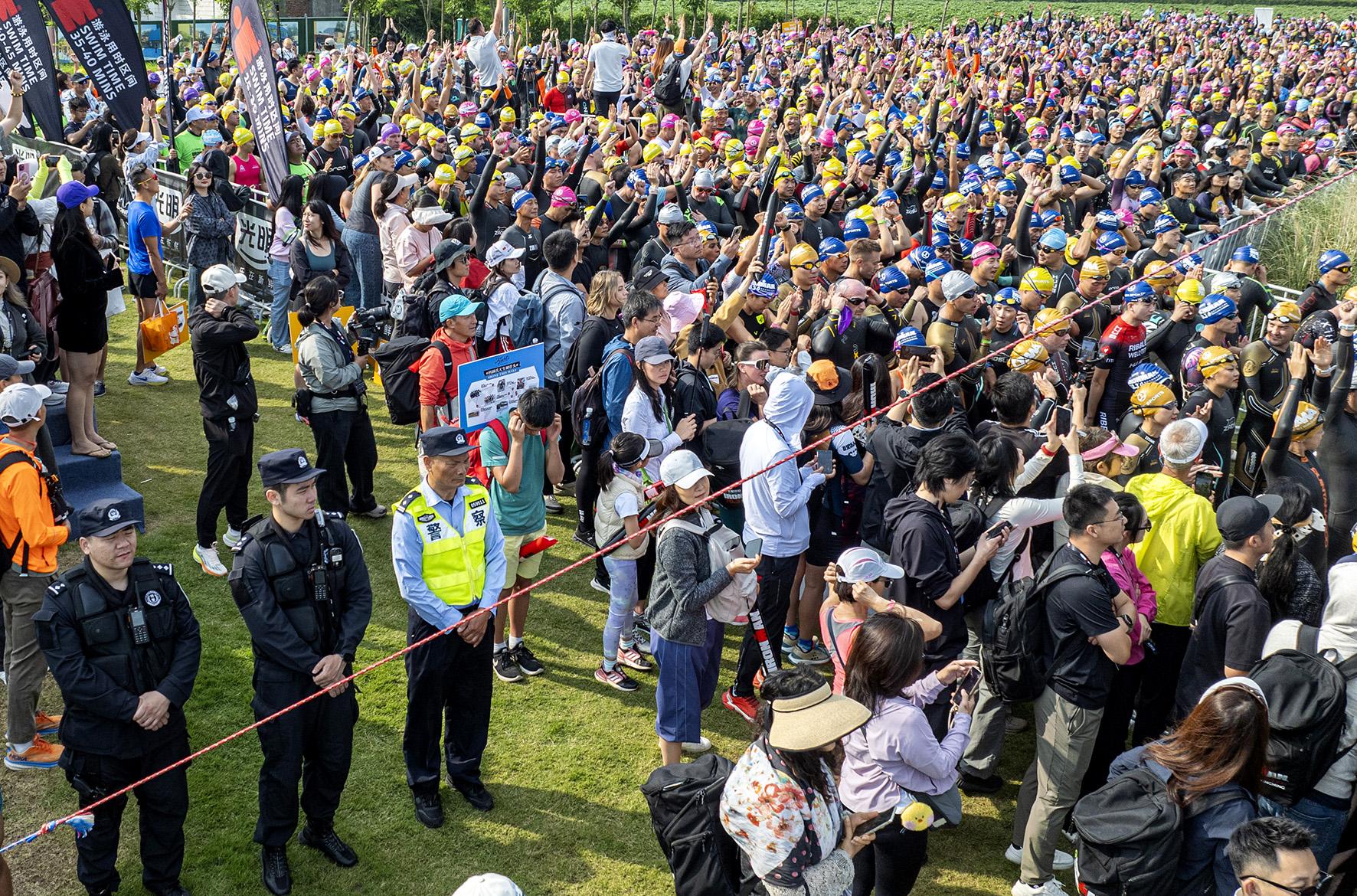 5月25日,上海市公安局崇明分局民警在鐵人三項賽上海站比賽現(xiàn)場執(zhí)勤。