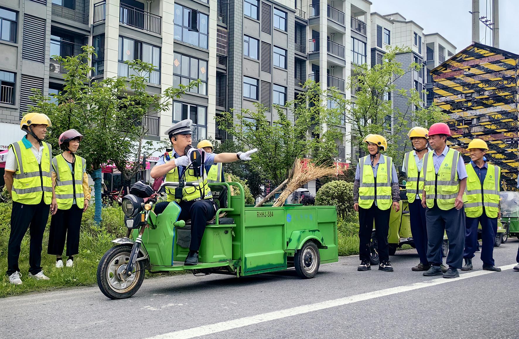 6月11日,安徽省舒城縣公安局交管大隊(duì)五顯中隊(duì)民警走進(jìn)五顯街道,向社區(qū)環(huán)衛(wèi)工人現(xiàn)場(chǎng)講解交通規(guī)則及安全防護(hù)知識(shí)。