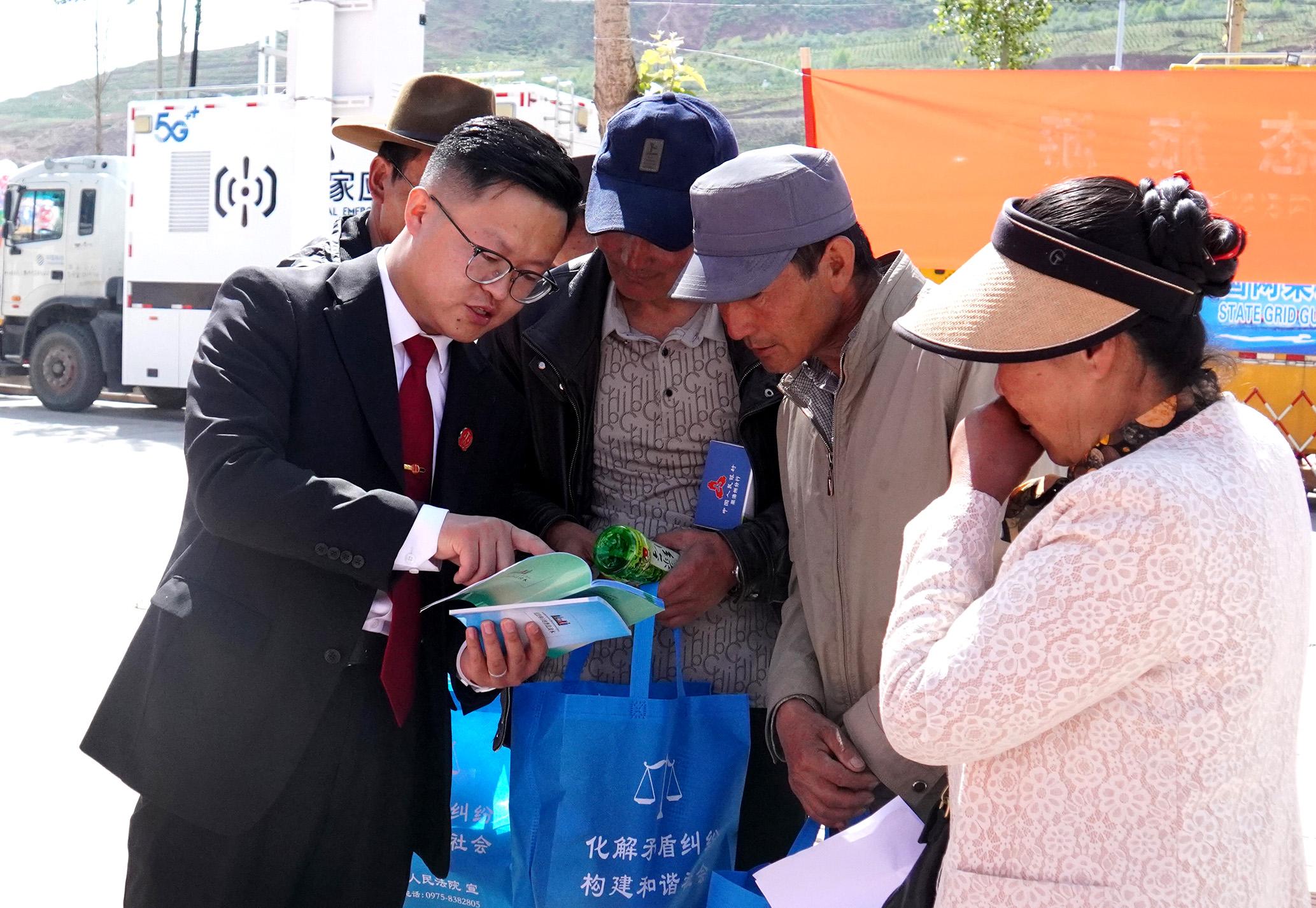 7月2日,青海省西寧市湟源縣人民法院法官在人民廣場(chǎng)開(kāi)展“普法進(jìn)社區(qū)、進(jìn)鄉(xiāng)村”主題活動(dòng)。