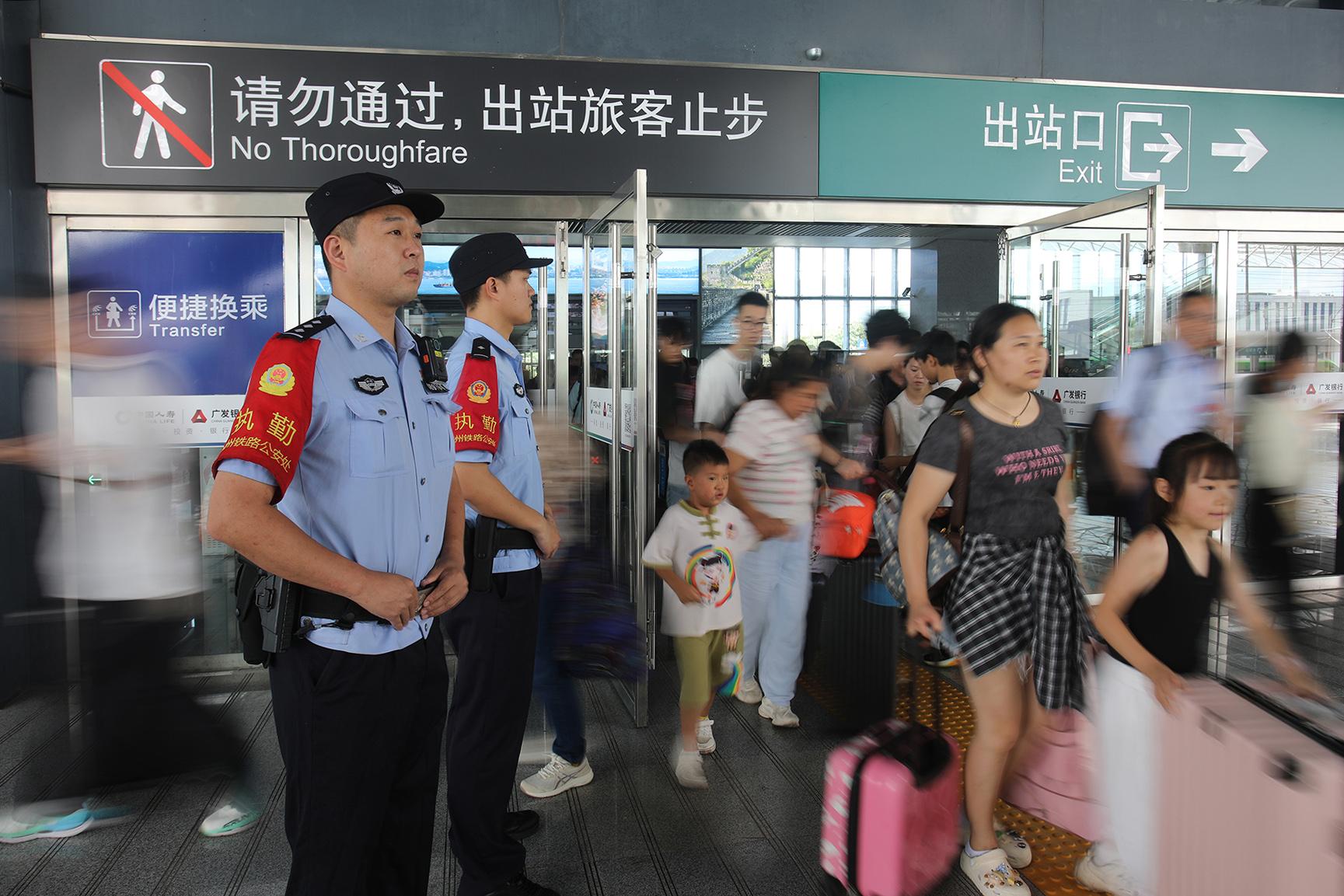 圖為7月3日,民警在車站進(jìn)站口執(zhí)勤。
