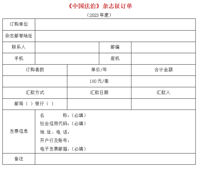 2023年度《中國(guó)法治》雜志征訂說(shuō)明