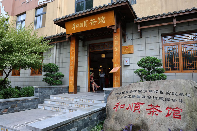 茶館在川渝地區(qū)是最常見(jiàn)的休閑去處,在重慶市沙坪壩區(qū)回龍壩鎮(zhèn)聚龍城社區(qū),一間非民辦“和順茶館”成為當(dāng)?shù)匕傩盏男聦櫍撼撕炔枇奶?,茶館還融合了各職能部門(mén)下沉社區(qū)的十幾個(gè)辦公室功能。政策宣講、糾紛調(diào)解、法律咨詢(xún)……一杯清茶間,社區(qū)里那些難辦、急辦的事總能得到妥善解決。