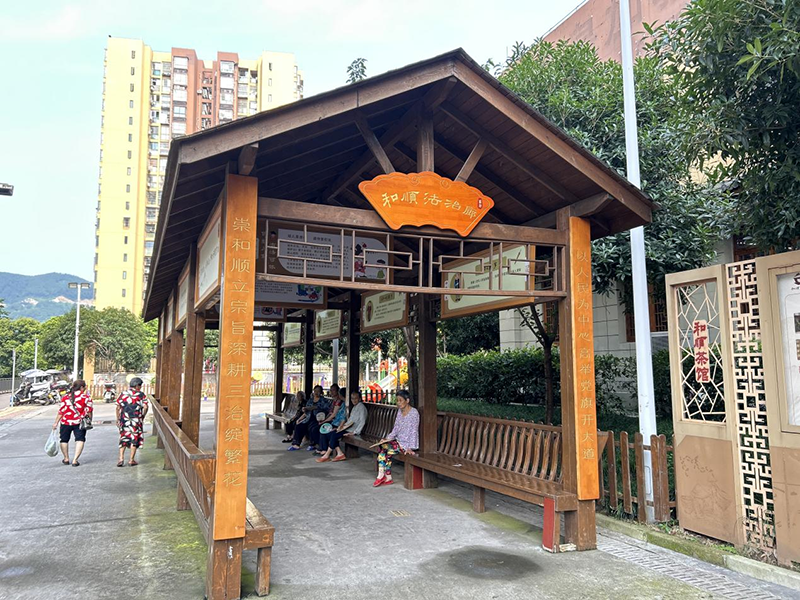 重慶市沙坪壩區(qū)回龍壩鎮(zhèn)聚龍城社區(qū)“和順茶館”是一間非民辦的多功能茶館:除了喝茶聊天,這里還融合了各職能部門下沉社區(qū)的十幾個辦公室功能,在這里每周定期為社區(qū)居民開展技能培訓(xùn)、文化宣講、初心回顧,以及文娛表演等。一杯茶間,就為百姓提供了政策宣講、糾紛調(diào)解、法律咨詢等身邊服務(wù)。而且,這里還是百姓的“議事堂”“民意收集站”。