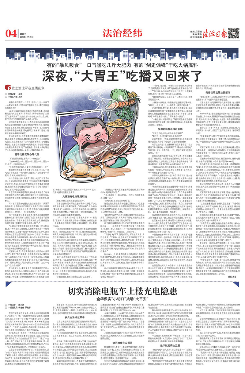 緊盯熱點(diǎn)話題,找準(zhǔn)法治切入點(diǎn),做好全鏈條考量,確保專業(yè)快速發(fā)聲,有力有效引導(dǎo)社會(huì)輿論。持續(xù)做好一版“法治時(shí)評(píng)”欄目,全年推出約200篇評(píng)論。針對(duì)四川一幼童遭大型犬撕咬、“婆孫插隊(duì)門”等突發(fā)社會(huì)熱點(diǎn)新聞,及時(shí)解析背后的各種法律問題,為公眾提供主流價(jià)值、觀點(diǎn)和思考。淄博燒烤、“村超”“村BA”爆火后,組織記者深入現(xiàn)場(chǎng)調(diào)查采訪,探尋基層社會(huì)治理創(chuàng)新模式。