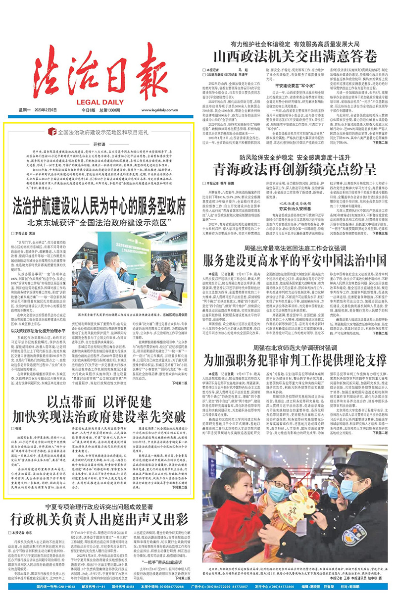 2023年2月6日,“全國法治政府建設(shè)示范地區(qū)和項(xiàng)目巡禮”專欄在《法治日?qǐng)?bào)》1版開欄