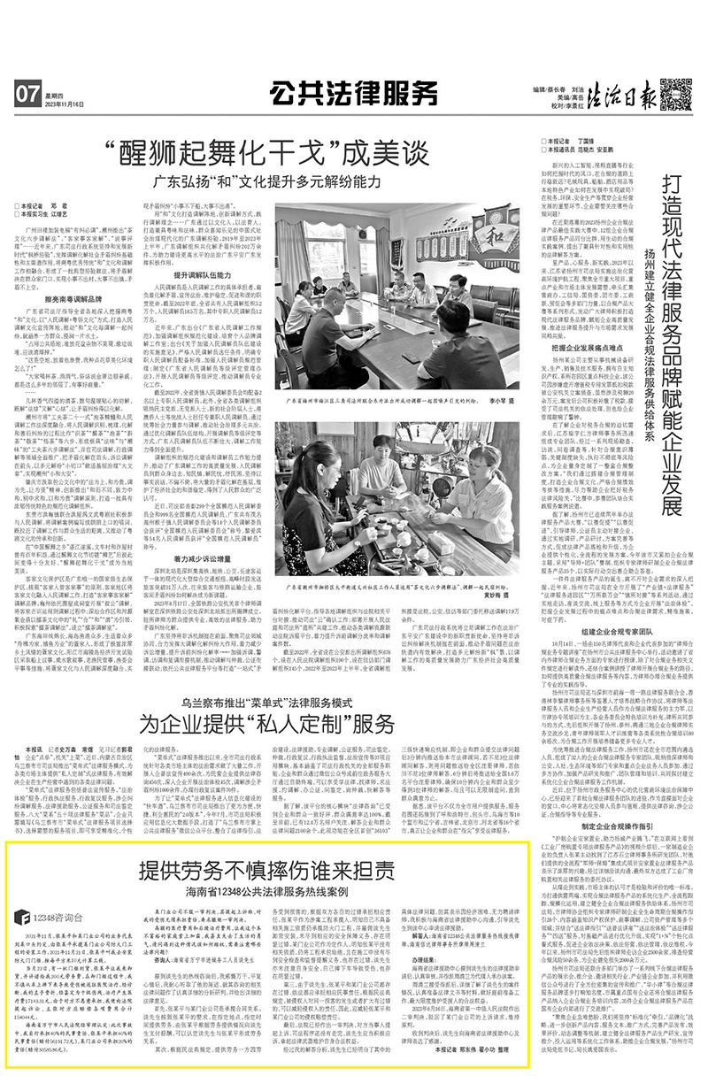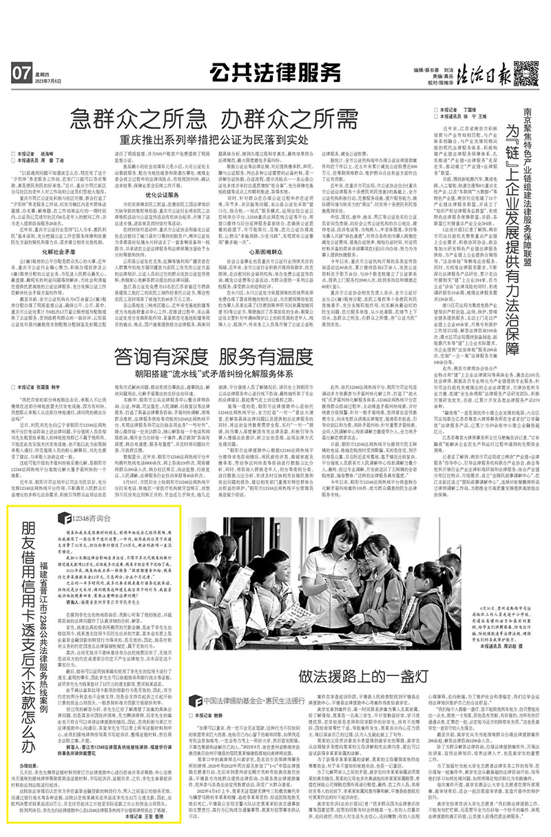 積極搭建公共法律服務(wù)平臺(tái)。做好《法治日?qǐng)?bào)》公共法律服務(wù)版;通過“12348咨詢臺(tái)”欄目、法治網(wǎng)“律師”頻道等平臺(tái),為群眾提供優(yōu)質(zhì)便捷法律服務(wù);法治日?qǐng)?bào)微信公眾號(hào)在菜單欄設(shè)置“國家法律法規(guī)數(shù)據(jù)庫”入口,方便讀者進(jìn)行法律檢索查詢。法治號(hào)客戶端設(shè)置服務(wù)頻道,打造一站式涉法服務(wù)“超市”。
