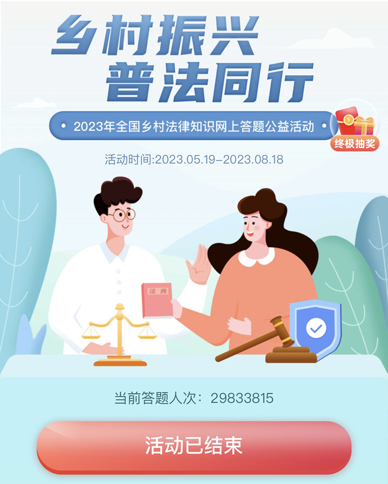“鄉(xiāng)村振興·普法同行”全國鄉(xiāng)村法律知識(shí)網(wǎng)上答題公益活動(dòng)參與答題人次達(dá)到2983萬