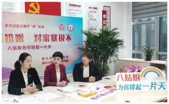 (圖為“八姑娘”公益律師聯(lián)盟成員做客鎮(zhèn)江市婦聯(lián)直播間。嚴海霞 攝)