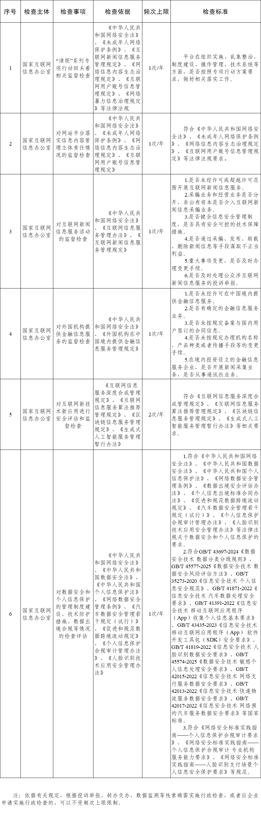 國(guó)家互聯(lián)網(wǎng)信息辦公室涉企行政檢查事項(xiàng)清單